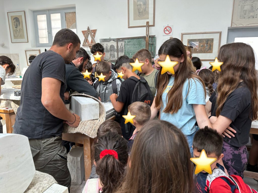 Σήμερα, Τετάρτη 24 Μαΐου, οι μαθητές μας επισκέφθηκαν το εργαστήριο μαρμάρου της Σχολής Καλών Τεχνών Πύργου μαζί με τους μαθητές του Νηπιαγωγείου Πύργου και τους μαθητές της ΣΤ’ τάξης του 1ου Δημοτικού Τήνου.