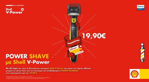 Παράλληλα, από την Παρασκευή 7 Απριλίου 2023, βρες ΑΠΟΚΛΕΙΣΤΙΚΑ στα πρατήρια Shell, το ΝΕΟ μοντέλο της ξυριστικής μηχανής Philips OneBlade στην προνομιακή τιμή των 19,90€.