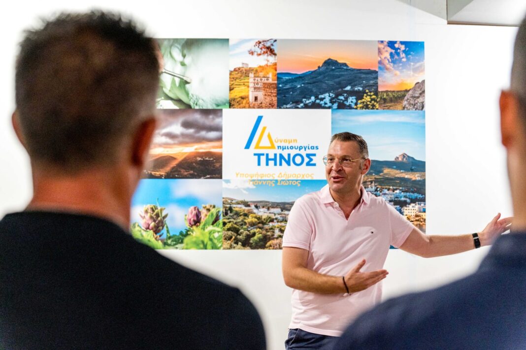 Ο νυν Δήμαρχος και εκ νέου υποψήφιος, διεκδικεί την ανανέωση της θητείας του με δυναμική παρουσία, με ένα ψηφοδέλτιο με τις περισσότερες υποψηφιότητες δημοτικών συμβούλων που έχει υπάρξει ποτέ στην ιστορία του Δήμου της Τήνου.