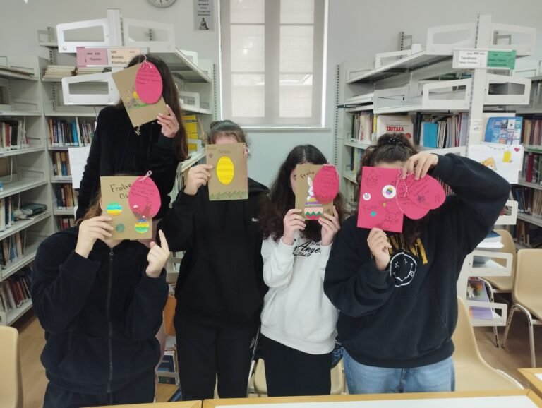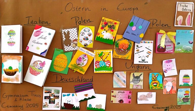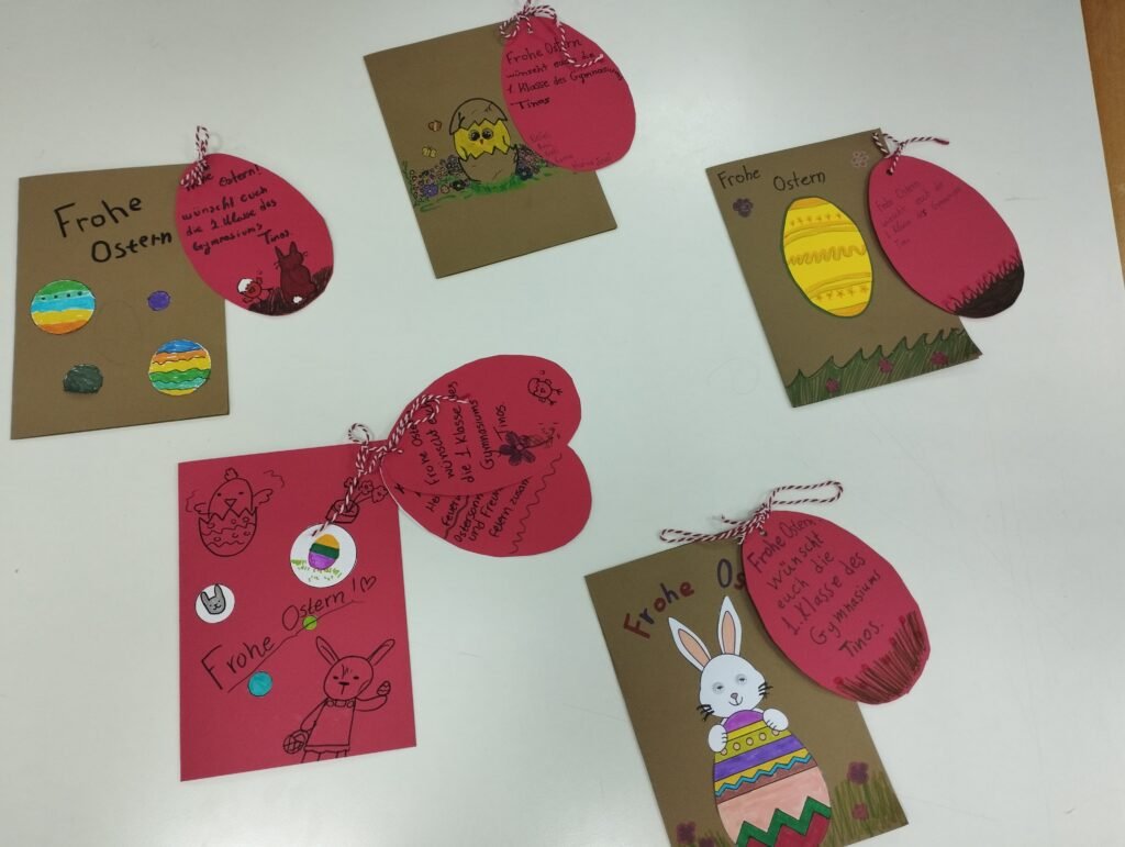 Η καθηγήτρια των Γερμανικών Ροϊδούλα Λόλα σε συνεργασία με καθηγήτριες Γερμανικών από σχολεία της Γερμανίας, Ιταλίας, Ουγγαρίας και Πολωνίας οργάνωσαν μια δράση με τίτλο «Ostern in Europa» (Το Πάσχα στην Ευρώπη). Οι μαθητές της Α΄ τάξης αρχικά κατασκεύασαν πασχαλινές κάρτες, στις οποίες έγραψαν στα γερμανικά τα έθιμα του Πάσχα της Τήνου και συνόδευσαν τα κείμενά τους με φωτογραφίες της Τήνου. Έπειτα οι κάρτες ταχυδρομήθηκαν στα υπόλοιπα σχολεία που έλαβαν μέρος στη δράση και με ανυπομονησία περιμέναμε να λάβουμε τις δικές τους κάρτες.