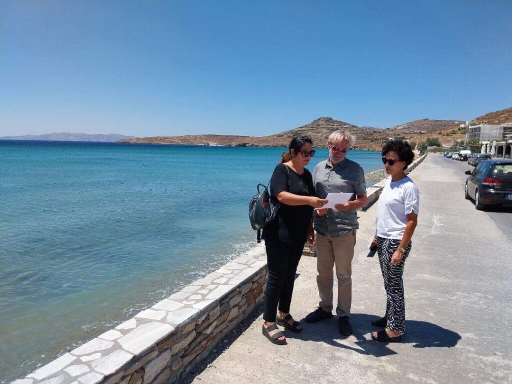 Αιγαίου κύριο Χατζημάρκο, τον Αντιπεριφερειάρχη Νοτίου Αιγαίου κύριο Λεονταρίτη, και ιδιαιτέρως προς την Έπαρχο Τήνου κα Αναστασία Δεληγιάννη – Άσπρου για την ολοκλήρωση του έργου αποκατάστασης του παραλιακού οδικού δικτύου του οικισμού των