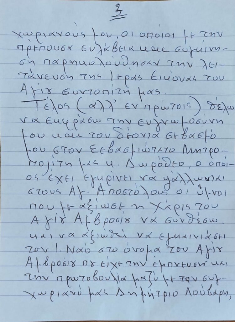 Ευχαριστήριο μήνυμα του Σάββα Απέργη για τον εορτασμό του Αγίου Αμβροσίου στο Τριαντάρο