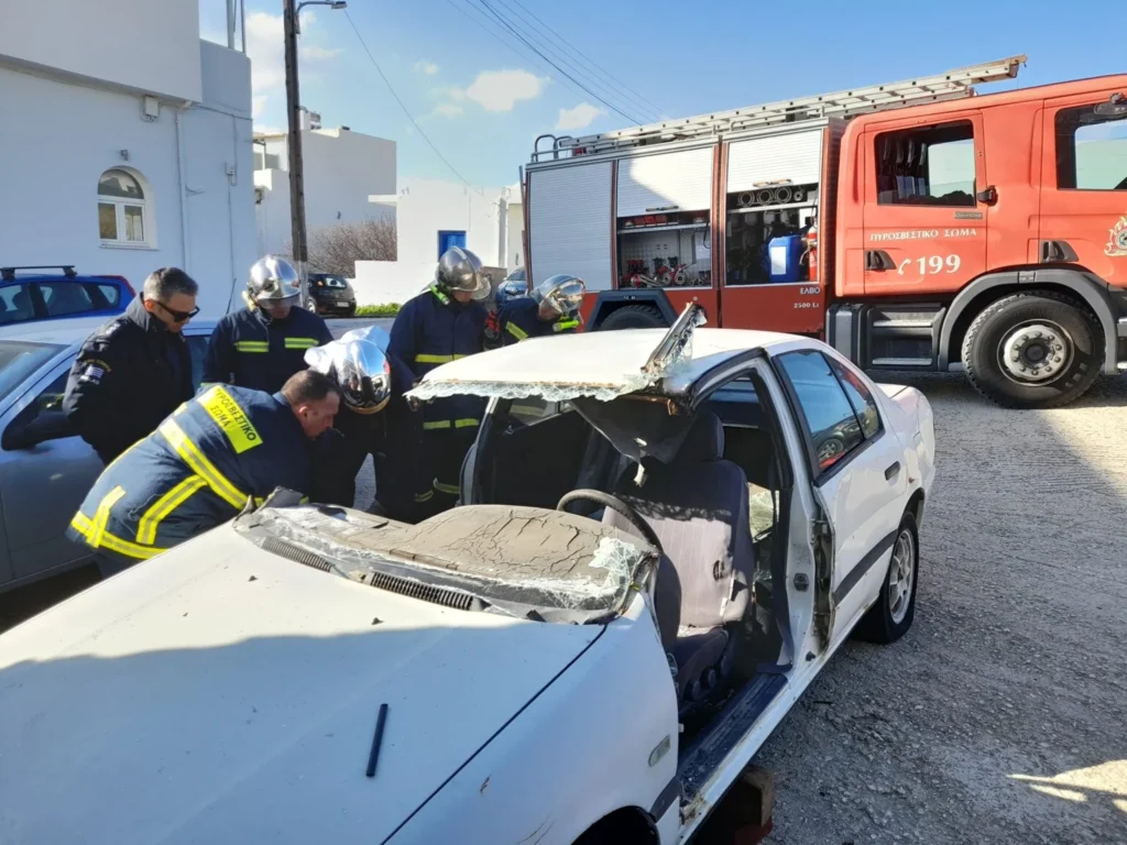 Οι μαθητές της Β’ και Γ’ ΕΠΑΛ του Μηχανολογικού τομέα είχαν την ευκαιρία να παρακολουθήσουν τη διαδικασία και τους τρόπους κοπής, από τους κατάλληλα εξοπλισμένους Πυροσβέστες με όλα τα απαραίτητα μέτρα προστασίας.