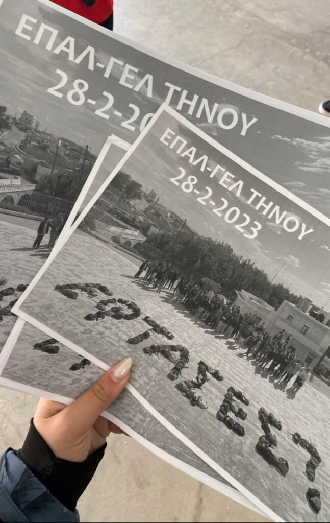 Αυτό ήταν το μήνυμα που δημοσίευσαν σήμερα το πρωί οι μαθητές και οι μαθήτριες του Γενικού και Επαγγελματικού Λυκείου Τήνου. Όλοι οι μαθητές των 2 σχολείων με τις τσάντες τους, σχημάτισαν τη λέξη «έφτασες;», εκφράζοντας μ’ αυτόν τον τρόπο τη θλίψη τους για τα θύματα του τραγικού δυστυχήματος στα Τέμπη.