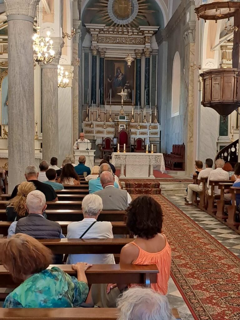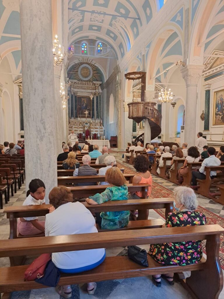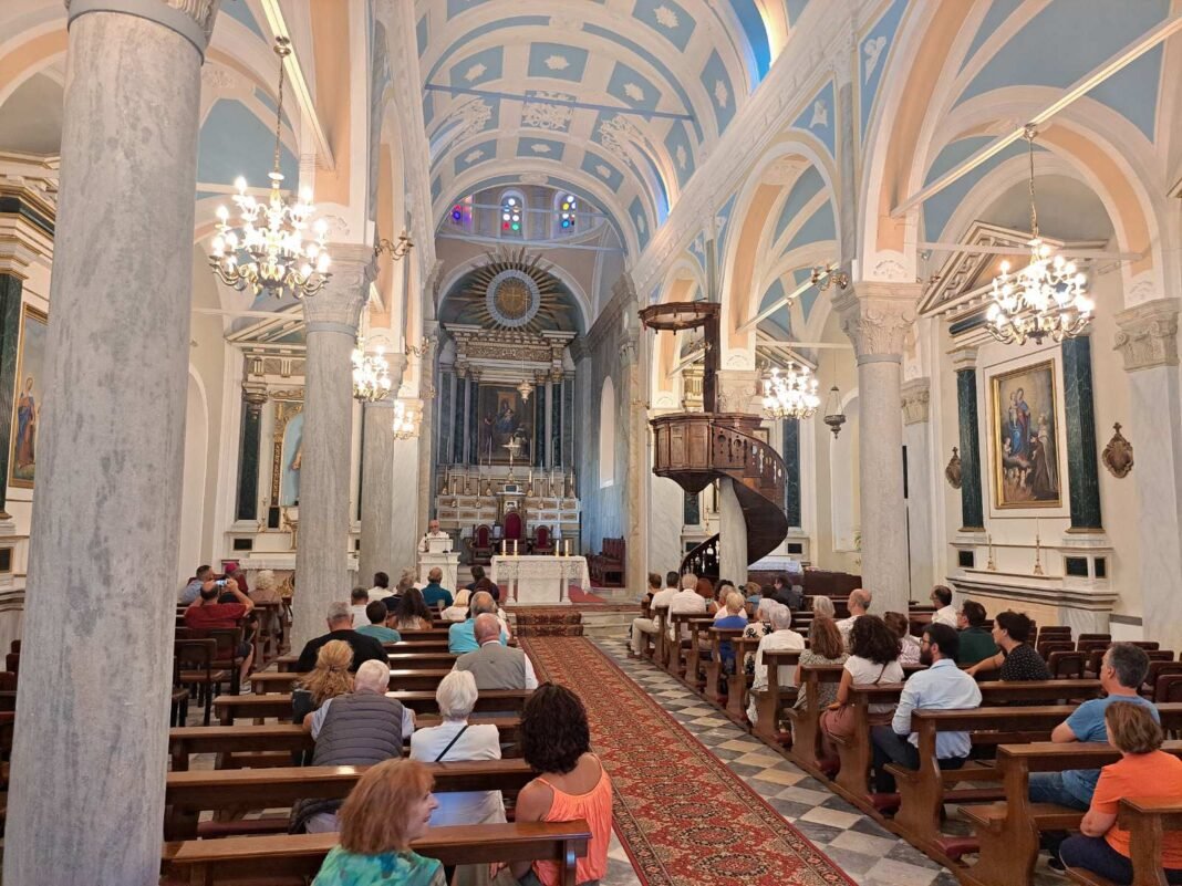 Τη Δευτέρα 19/08/2024 πραγματοποιήθηκαν με επιτυχία τα εγκαίνια της προσφάτως ανακαινισμένης Έκθεσης Εκκλησιαστικών και Πολιτιστικών Κειμηλίων στο κτήριο της Καθολικής Αρχιεπισκοπής Νάξου – Τήνου – Άνδρου – Μυκόνου υπό τη διεύθυνση του Αποστολικού Αρχείου «Πίστη και Πολιτισμός» στην Ξινάρα. Πλήθος κόσμου παρακολούθησε τη σεμνή τελετή, η οποία ξεκίνησε με τον χαιρετισμό του Σεβασμιότατου π. Ιωσήφ Πρίντεζη. Στη συνέχεια, ο π. Μάρκος Φώσκολος παρουσίασε ιστορικές πληροφορίες αναφορικά με τη δημιουργία του Αποστολικού Αρχείου της Καθολικής Αρχιεπισκοπής , καθώς και της α’ φάσης της Έκθεσης με τίτλο «Panis Angelicus», το οποίο όνομα επιλέχθηκε εκ νέου για την ανακαινισμένη πλέον Έκθεση Εκκλησιαστικών και Πολιτιστικών Κειμηλίων.