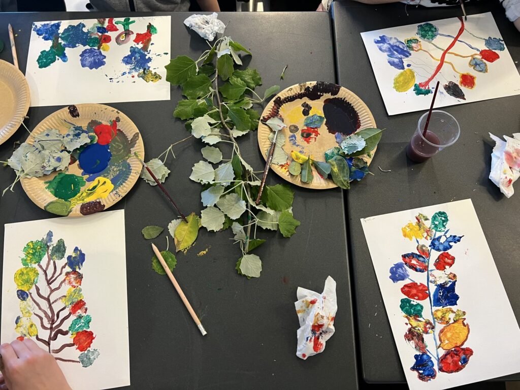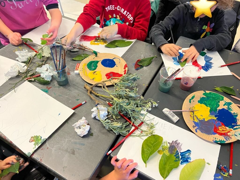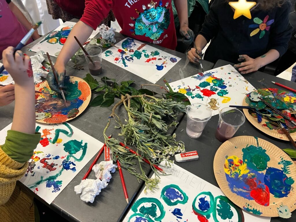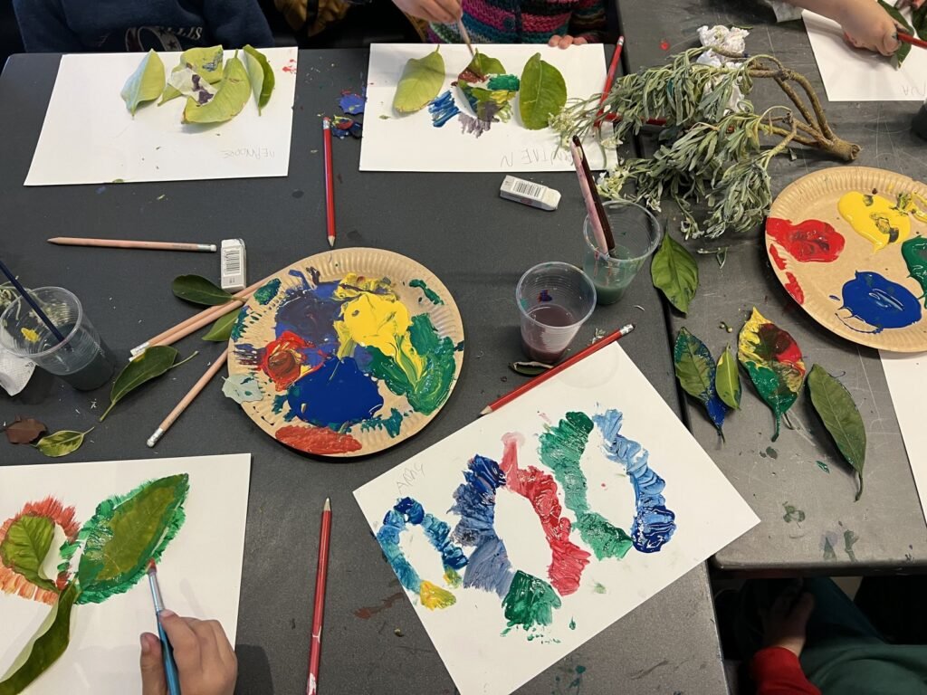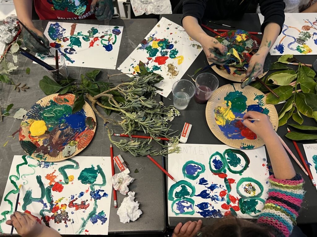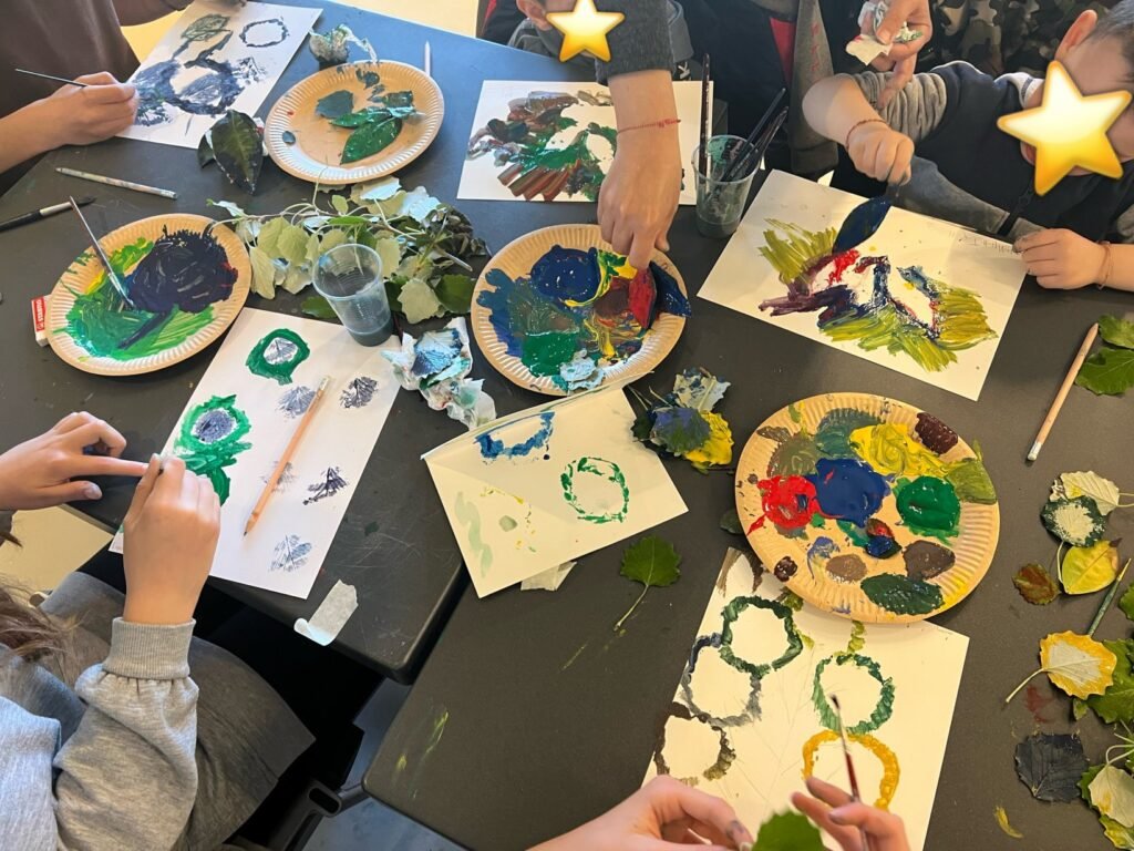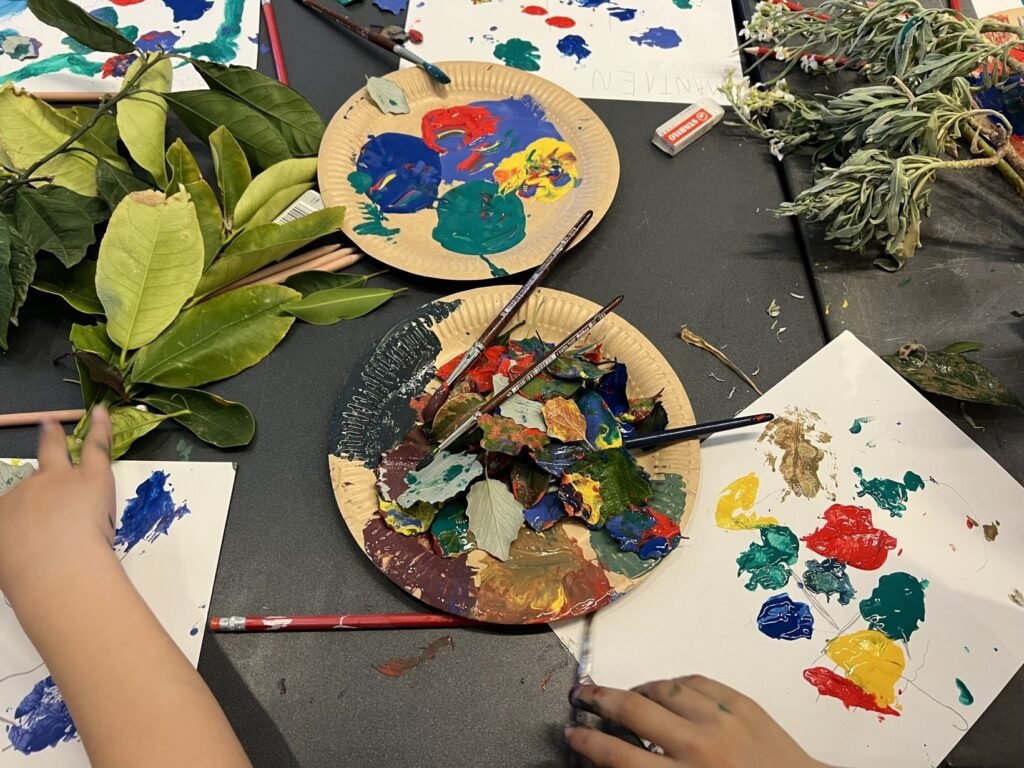 Με την καθοδήγηση της εικαστικού κ. Κολλύρη Μαριάννας, οι μαθητές ήρθαν σε επαφή με τη θεματολογία του ελληνικού παραδοσιακού κεντήματος, τη θεωρία του μοτίβου και τη χρήση των βασικών και συμπληρωματικών χρωμάτων στη ζωγραφική. Στη συνέχεια, δημιούργησαν αντίστοιχα μοτίβα με χρωματιστές τέμπερες, αξιοποιώντας στοιχεία από το φυσικό περιβάλλον, όπως φύλλα δέντρων και φυτών, ως σφραγίδες και στένσιλ.