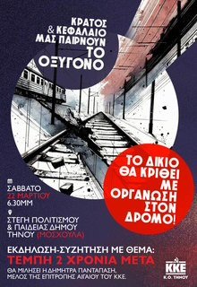 Εκδήλωση ΚΟΒ ΚΚΕ: «Τέμπη 2 χρόνια μετά» στη Στέγη Πολιτισμού & Παιδείας Τήνου (Μοσχούλα)