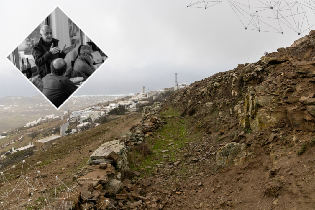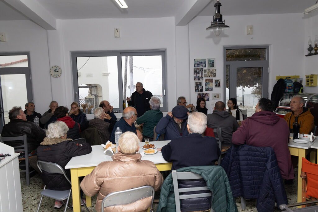 Στην συνάντηση βρέθηκαν κάτοικοι του χωριού, εκπρόσωποι της δημοτικής αρχής και εκπρόσωποι της εταιρείας με τον Νίκο Μπαλλή να συντονίζει την παρουσίαση και την περιήγηση στο έργο ανάπλασης της δεξαμενής υδροδότησης και το πλάνο δράσεων για την προστασία και ανάδειξη