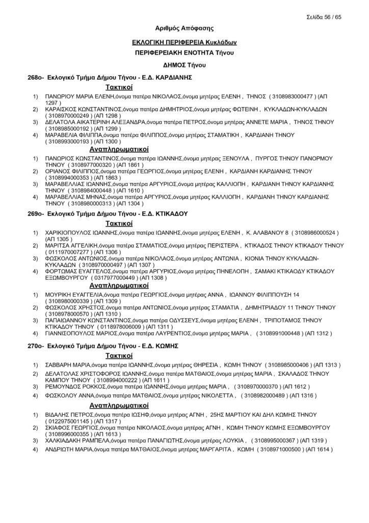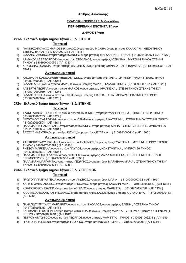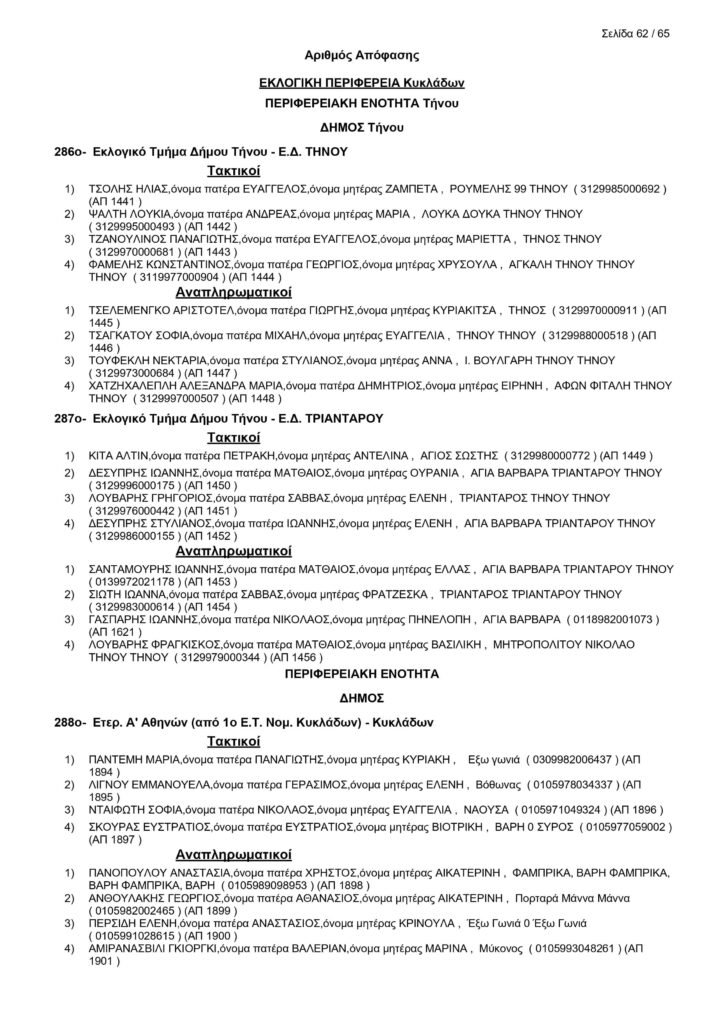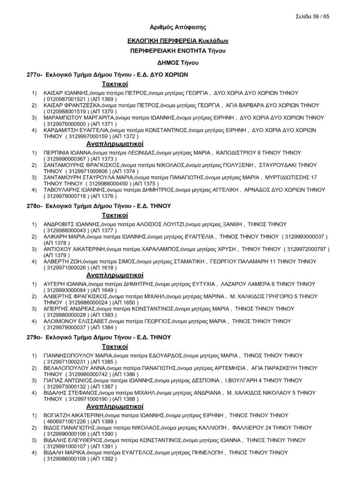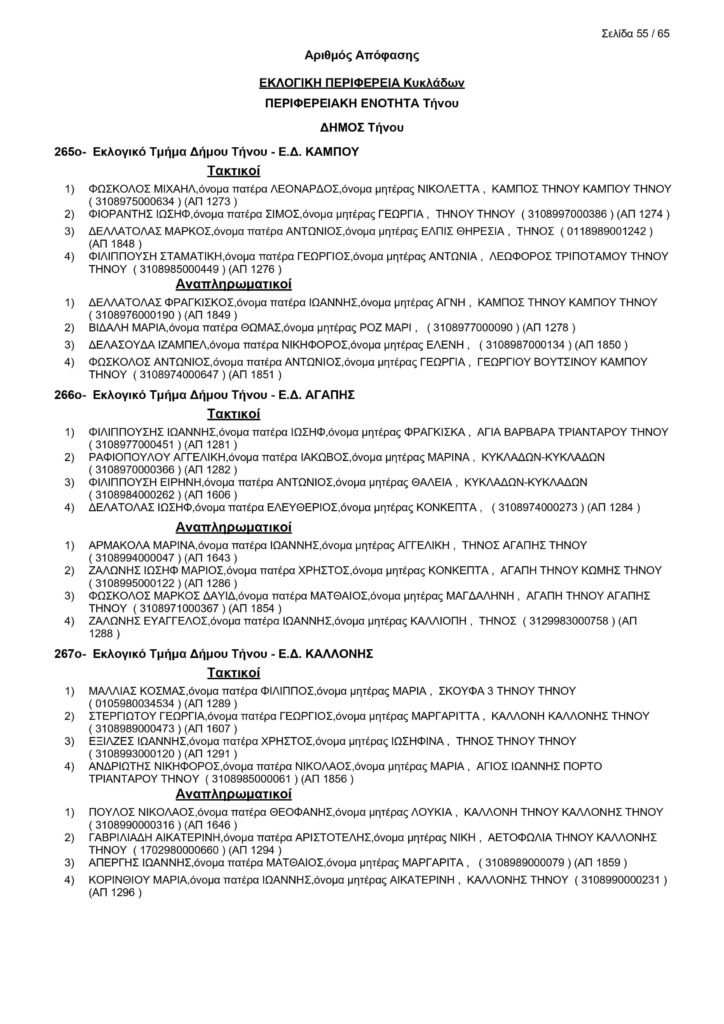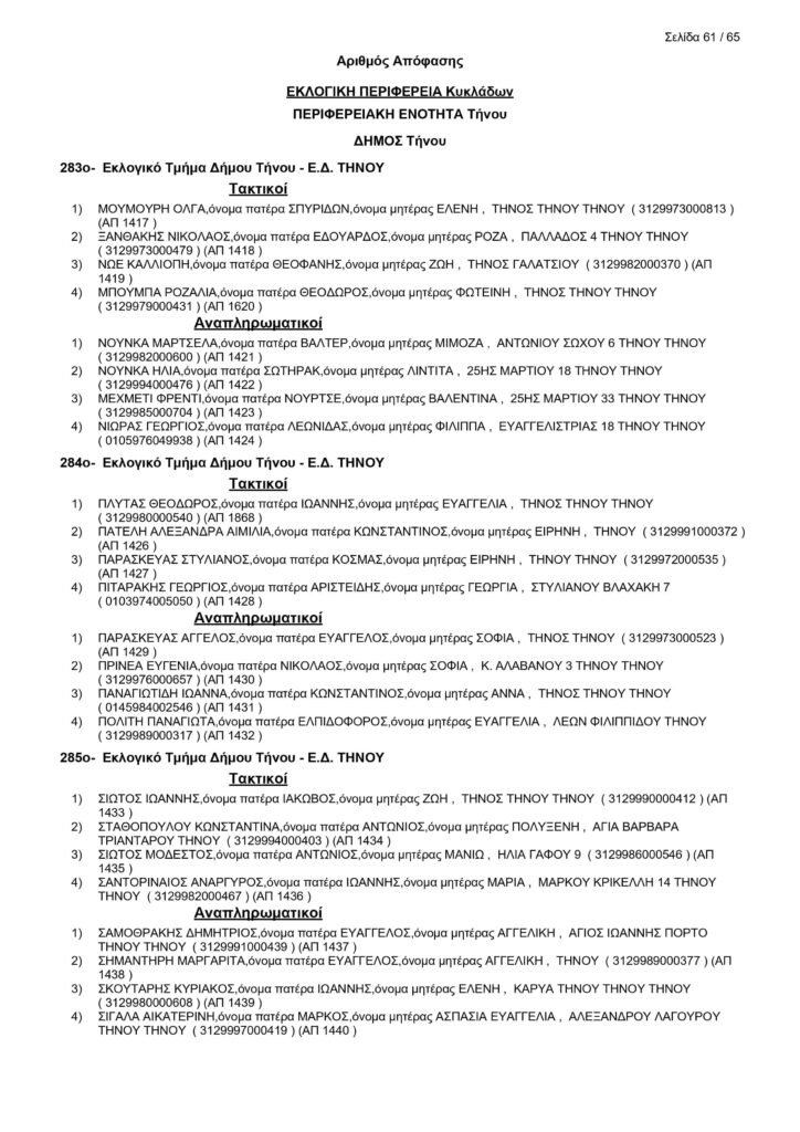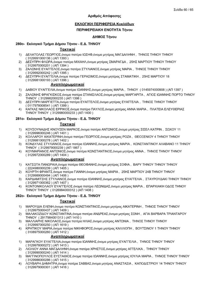 Εκλογές 25ης Ιουνίου – Τα μέλη των Εφορευτικών στην Τήνο