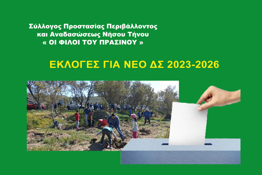 Την 1η Μαρτίου 2023 ημέρα Τετάρτη και ώρα 6:30μμ, θα πραγματοποιηθεί η (πρώτη) Γενική Συνέλευση στα γραφεία του Συλλόγου, στη διεύθυνση Βαρύ Τήνου (εντός του φυτωρίου του Συλλόγου).