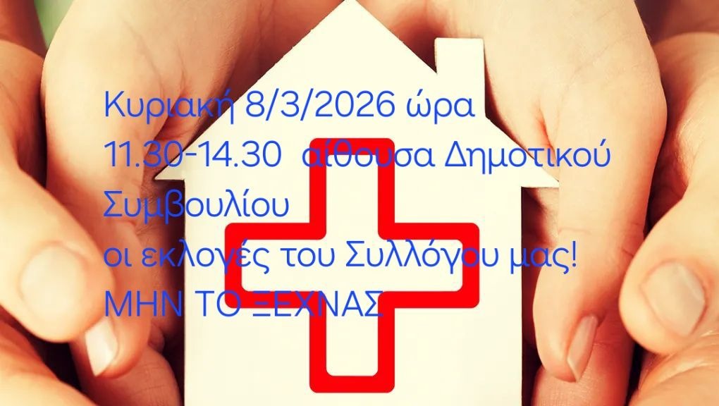 Κυριακή  8 Μαρτίου 2026, από τις 11:30 μέχρι τις 14:30 στην αίθουσα Δημοτικού Συμβουλίου. Θα πραγματοποιηθούν εκλογές του Συλλόγου Φίλων Κέντρου Υγείας Νικόλαος Κόγκος.