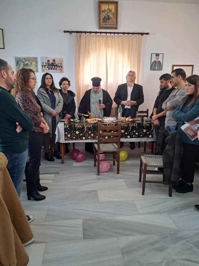Τις Αγιοβασιλειόπιτες ευλόγησε ο Αρχιμ. Κύριλλος Κονταξής ο οποίος μετέφερε τις ευχές και ευλογίες του Σεβασμιωτάτου Μητροπολίτη Σύρου-Τήνου κ. Δωροθέου Β’ για μια ευλογημένη χρονιά.