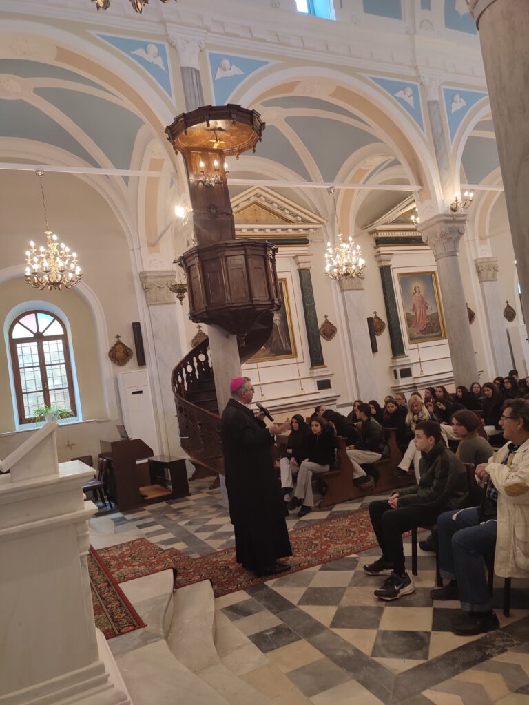 Εκπαιδευτική επίσκεψη της Γ’ Γυμνασίου της Λεοντείου Σχολής Αθηνών στον Καθεδρικό Ναό Παναγίας του Ροδαρίου και το Αποστολικό Κέντρο «Πίστη και Πολιτισμός» στην Ξυνάρα Τήνου
