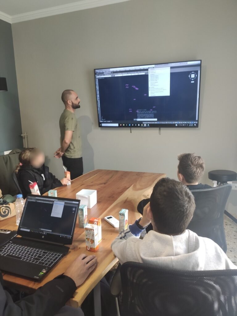 Η δράση συνεχίστηκε στο πάρκινγκ της λαϊκής αγοράς, όπου ο αξιόλογος τοπογράφος μηχανικός Γιάννης Βιδάλης μαζί με τον συνεργάτη του ηλεκτρολόγο μηχανικό Ιωσήφ Καραμπατζάκη, παρέα με τα παιδιά έκαναν μετρήσεις, τις οποίες αποτύπωσαν σε ένα τοπογραφικό σχέδιο!
