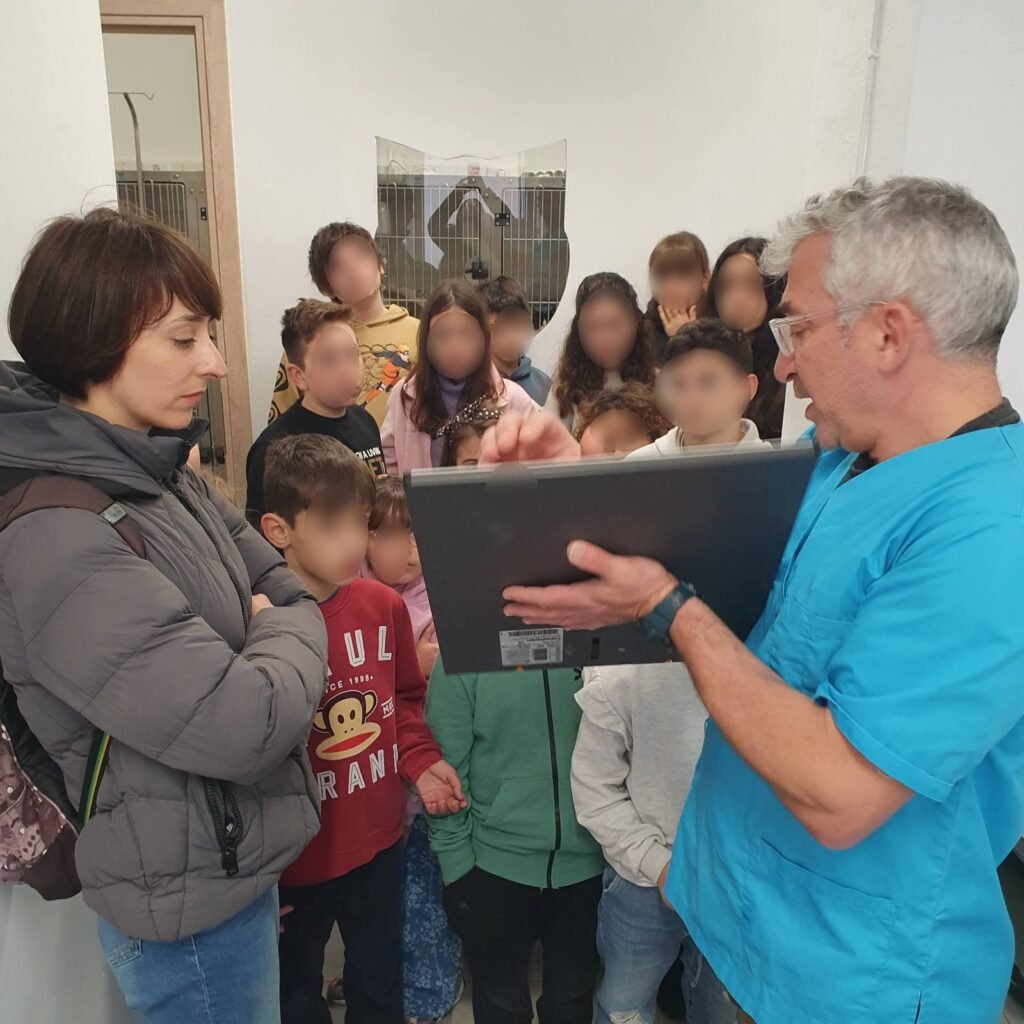 Η πρώτη ήταν στο κτηνιατρείο του κ. Βορίσση, ο οποίος με μεγάλη χαρά και καλή διάθεση ξενάγησε τα παιδιά σε όλους τους χώρους του πλήρως εξοπλισμένου ιατρείου του, μοιράστηκε τις εμπειρίες του και έλυσε όλες τις απορίες των παιδιών.