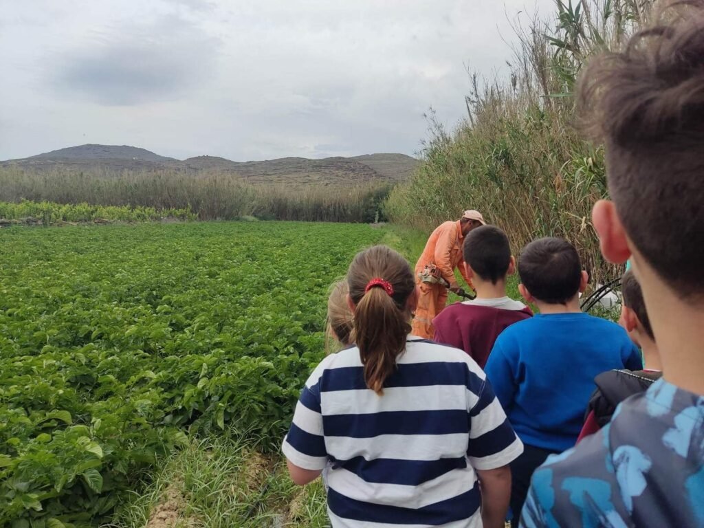 β) επίσκεψη αγροτών στο σχολείο, συνεντεύξεις και καταγραφή από τα