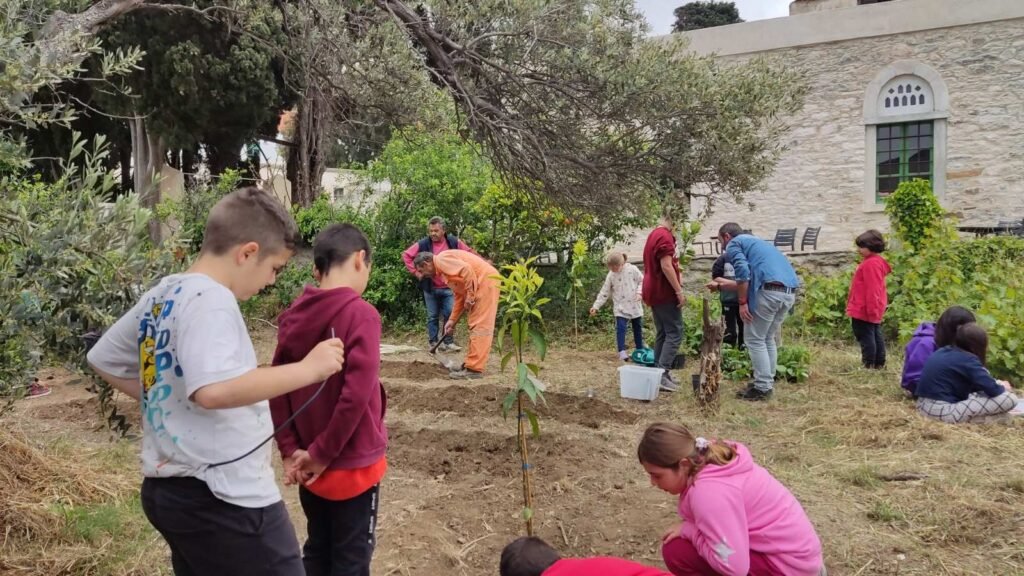 *Ο κήπος που φύτεψαν τα παιδιά βρίσκεται στους χώρους της πρώην Μονής και Σχολής Ουρσουλινών στα Λουτρά της Τήνου και παραχωρήθηκε από την Καθολική Αρχιεπισκοπή Νάξου Τήνου Άνδρου Μυκόνου για την υλοποίηση του συγκεκριμένου προγράμματος. Για την ακρίβεια βρίσκεται κοντά στο δημοτικό σχολείο Εξωμβούργου και δίπλα στο κοινωνικό καφέ SERVIAM, το οποίο αξιοποίησε το καλοκαίρι την πρώτη σοδειά!
