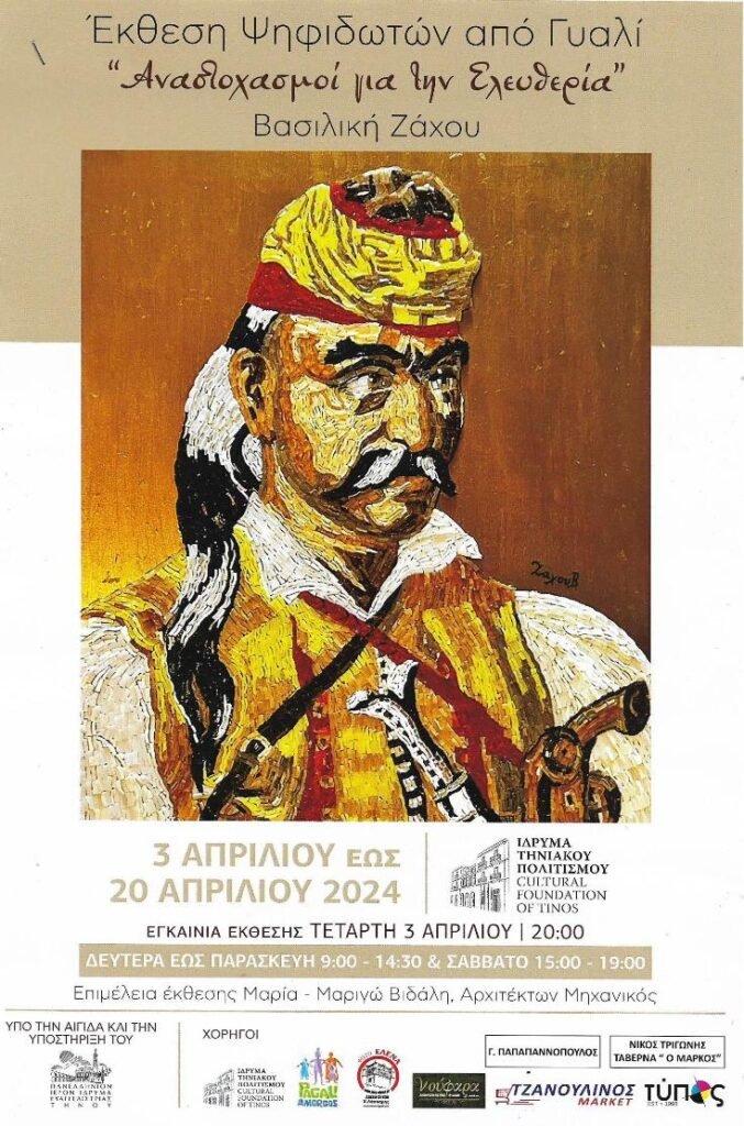 Η έκθεση τελεί υπό την αιγίδα του Π.Ι.Ι.Ε. Τήνου και θα διαρκέσει μέχρι τις 20 Απριλίου 2024.