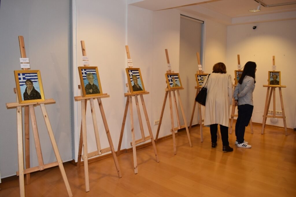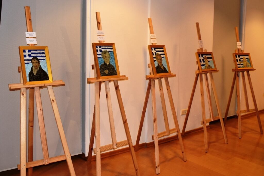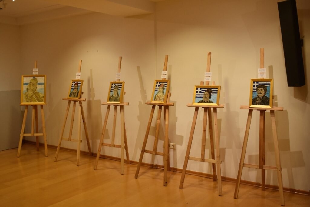 Η κ. Βασιλική Ζάχου, εμπνευσμένη από γνωστές προσωπογραφίες των πρωταγωνιστών της Ελληνικής Επανάστασης του 1821, παρουσιάζει τις δικές της εκδοχές αυτών των προσωπογραφιών με ψηφιδωτά με γυαλί σμιλευμένο σε ψηφίδες διαστάσεων από 1έως 5 χιλιοστά.