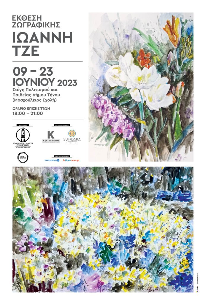 Ο Πολιτιστικός Σύλλογος Στενής Τήνου “Άγιος Αντώνιος” σας προσκαλεί στην έκθεση ζωγραφικής με έργα του Ιωάννη Τζε την Παρασκευή 09-Ιουνίου 2023, στη στέγη Πολιτισμού και Παιδείας του Δήμου Τήνου (Μοσχούλειος Σχολή) .