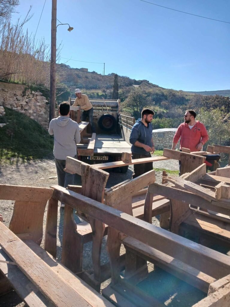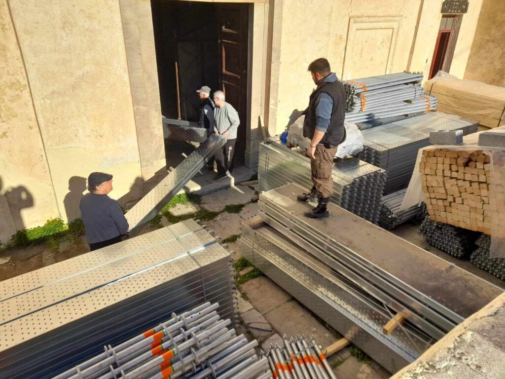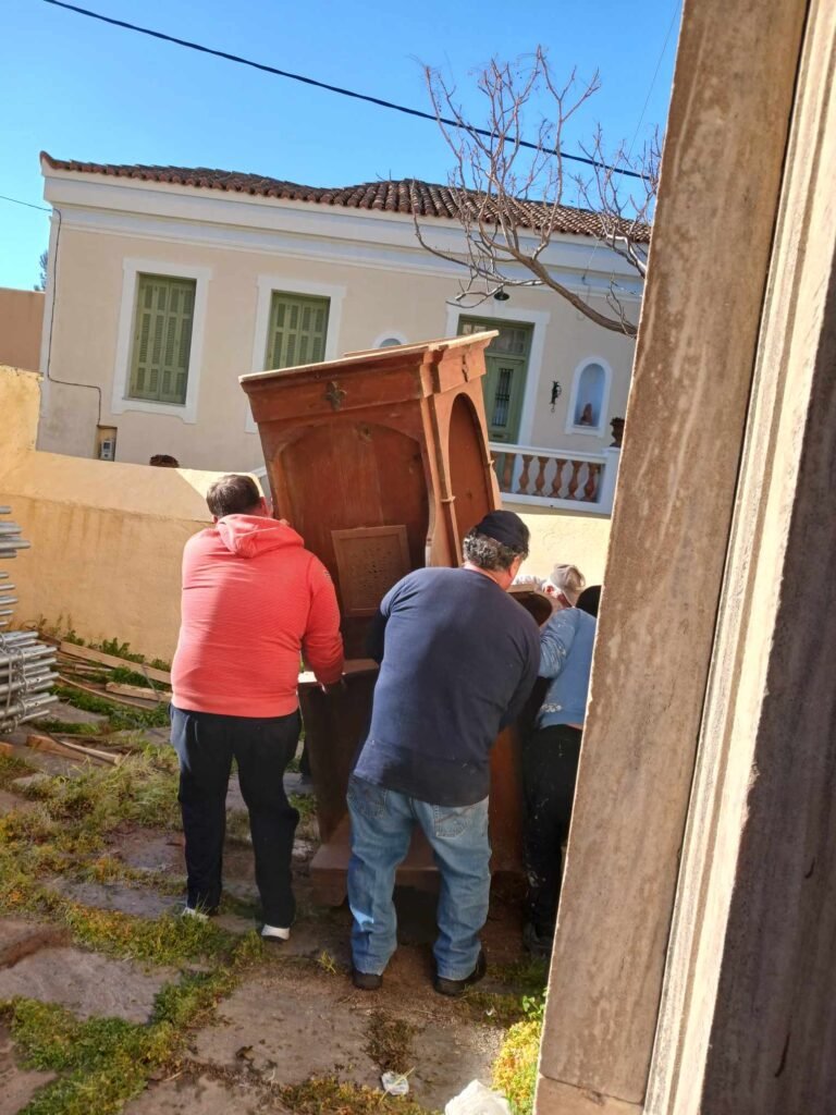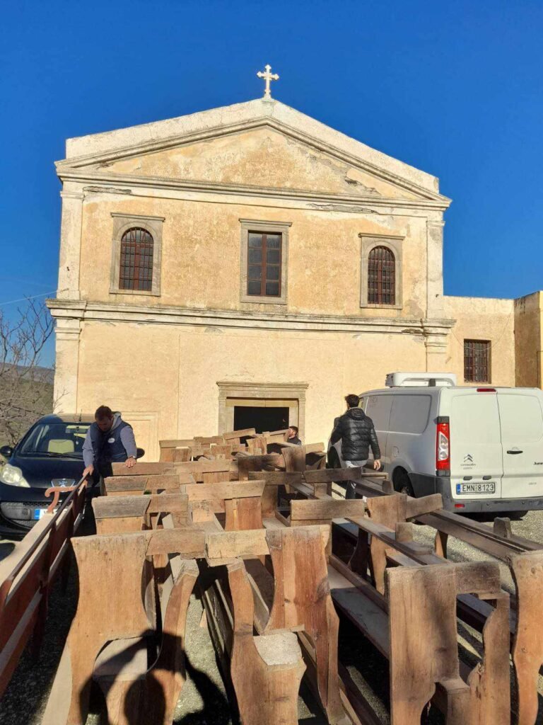 Η Κυριακή 4 Φεβρουαρίου ήταν μια σημαντική και συγκινητική μέρα καθώς 25 εθελοντές συμμετείχαν στον εσωτερικό καθαρισμό του Ναού και τη μεταφορά των ικριωμάτων (σκαλωσιές) που από μερικές μέρες είχαν φθάσει στη Τήνο, προκειμένου να προχωρήσουν το συντομότερο οι εργασίες τοποθέτησής τους. Να αναφερθεί ότι όλα τα υλικά διατέθηκαν από το Υπουργείο Πολιτισμού και πως οι εργασίες στο σύνολό τους διεξάγονται από την Εφορία Αρχαιοτήτων Κυκλάδων.