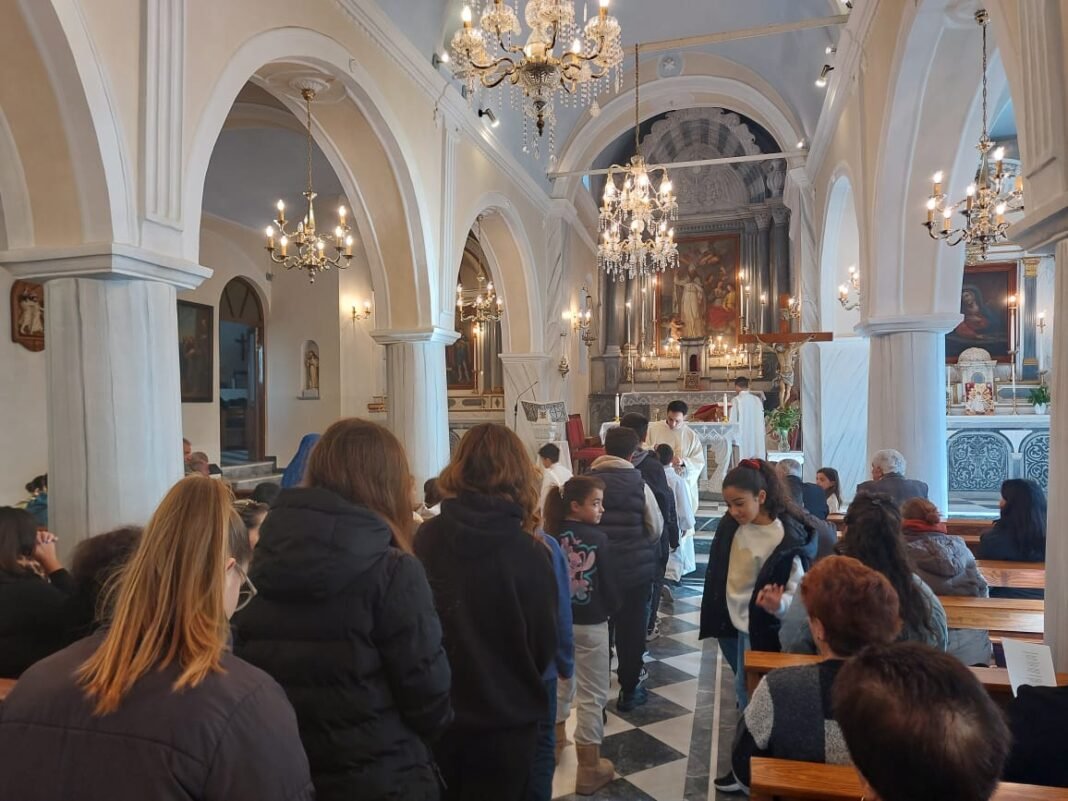 κυρίως παιδιά και νέοι, συμμετείχαν στην Θεία Λειτουργία, η οποία τελέστηκε από