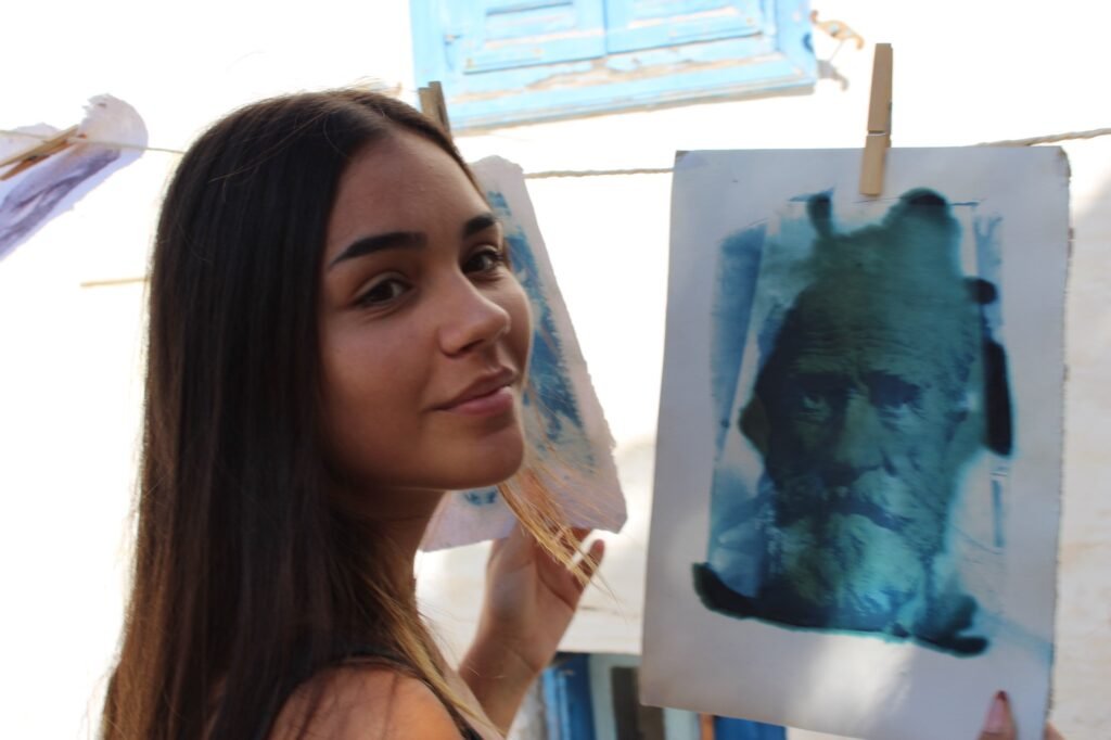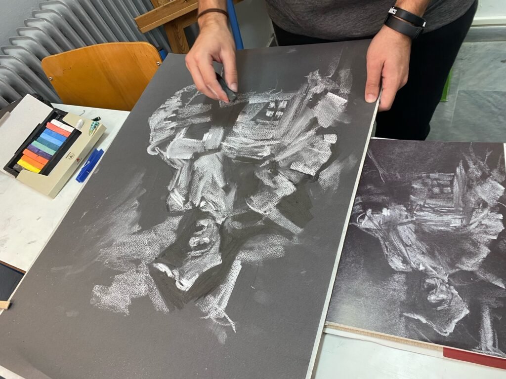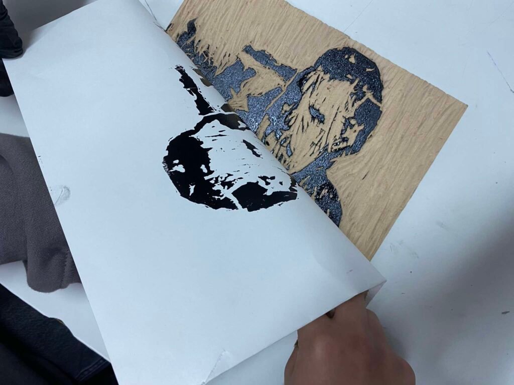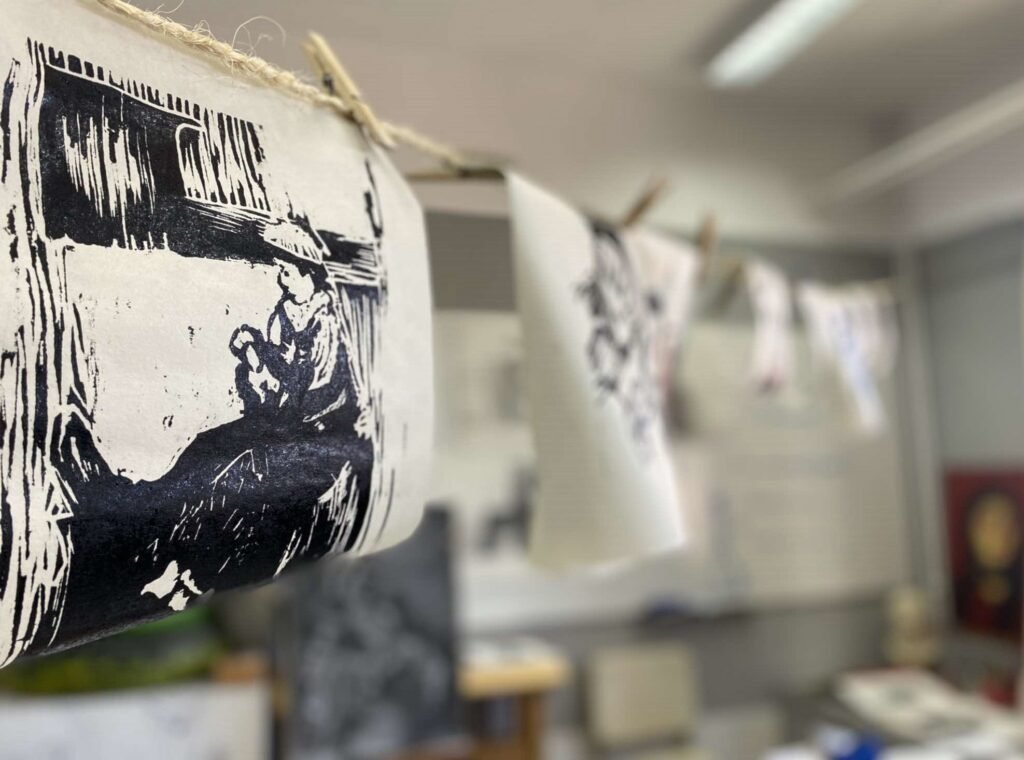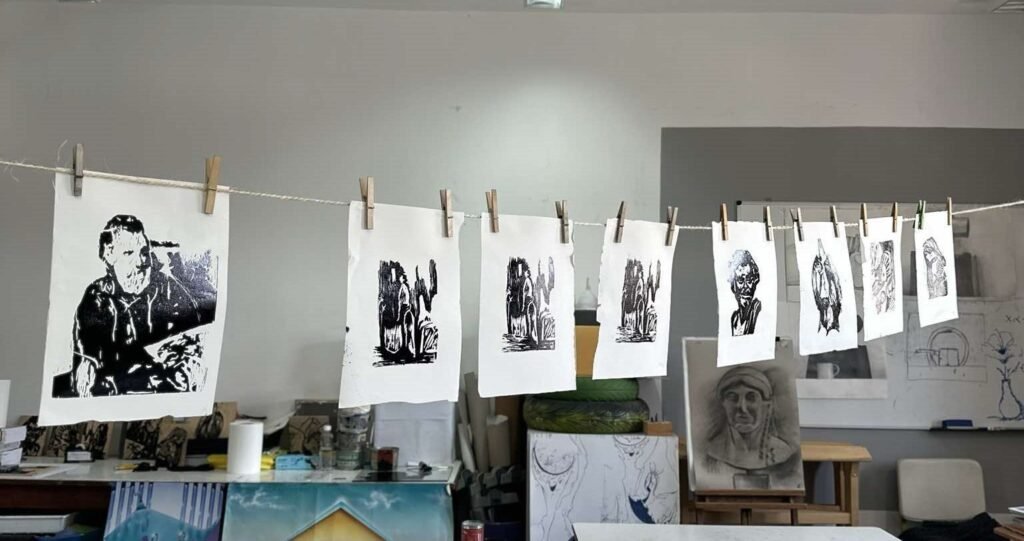 χαρακτικής-ξυλογραφία, γραφήματα με ακρυλικά, σκίτσα,