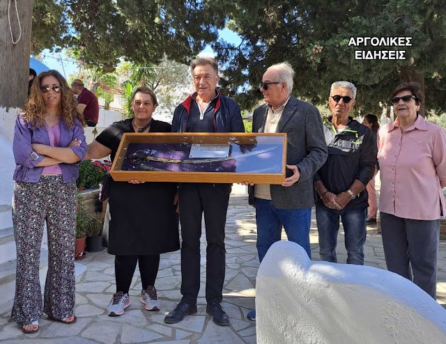 Η σπάθα του ήρωα παραδόθηκε σε μια μικρή λιτή τελετή από τον υποπλοίαρχο του Πολεμικού Μουσείου Δημήτρη Παπακωνσταντίνου στον Πρόεδρο του Συλλόγου Κωνσταντίνο Δημούλη.