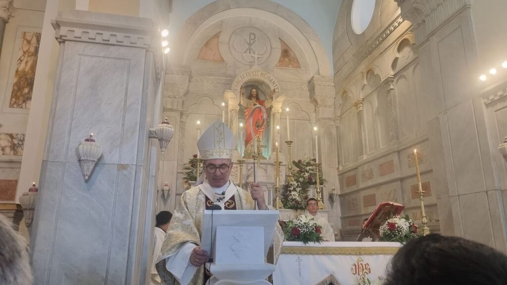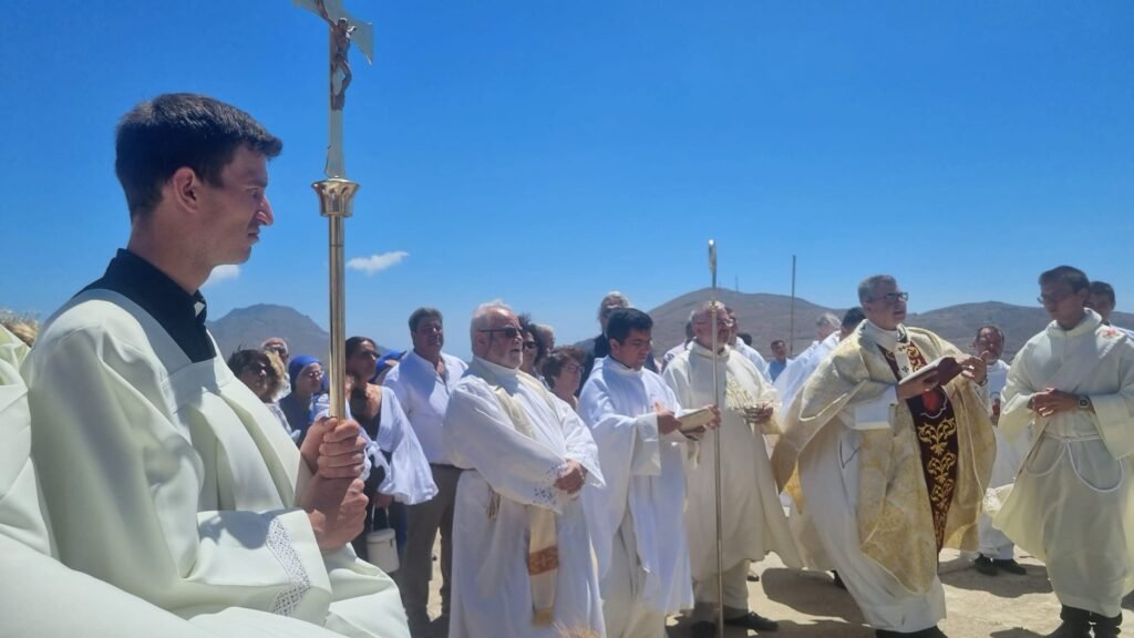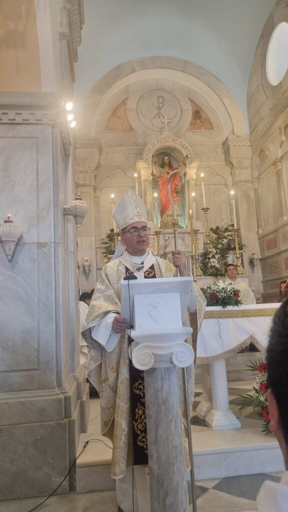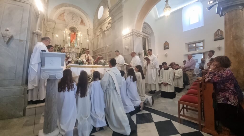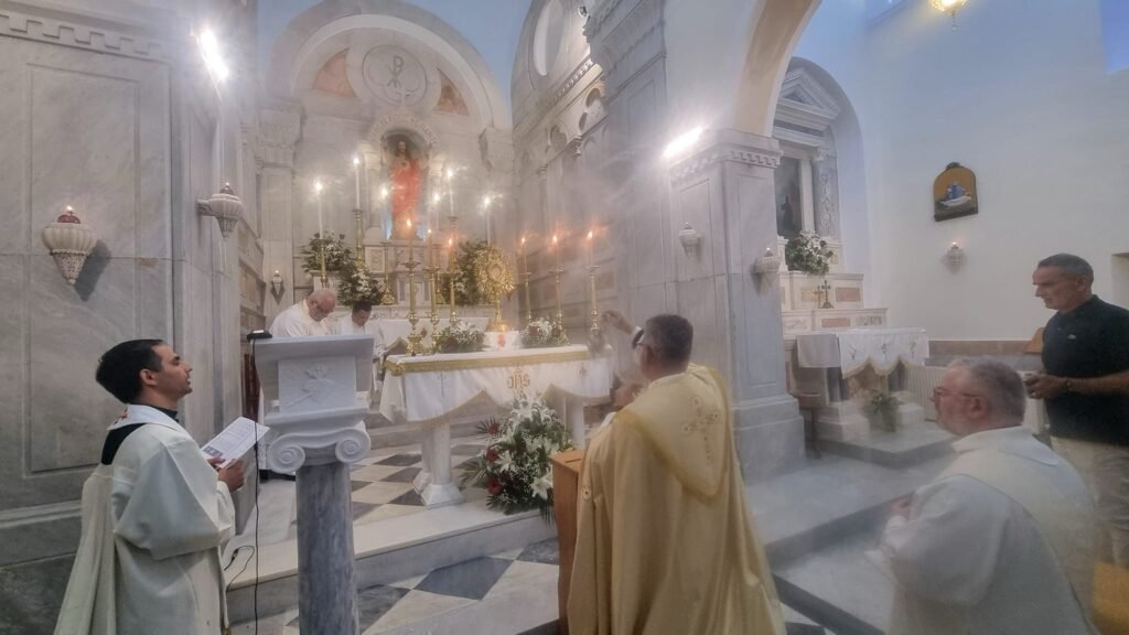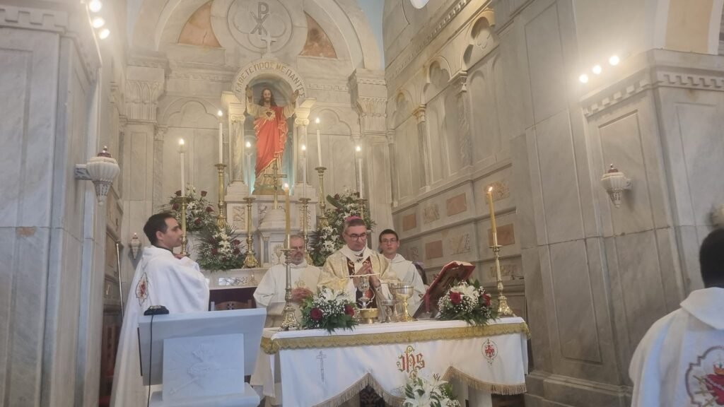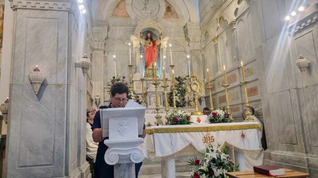Στις 11.00΄εγινε η Αρχιερατική Θεία Λειτουργία προεξάρχοντος του σεβ/του π. Ιωσήφ, κατά την οποία συλλειτουργήσαν οι ιερείς της Τήνου και οι ιερείς του τάγματος του Ενσαρκωμένου Λόγου που βρίσκονται στην Τήνο κι αυτό το καλοκαίρι, για την επιμόρφωση 15 ιεροσπουδαστών και ισάριθμων καλογραιών του ιδίου τάγματος.
