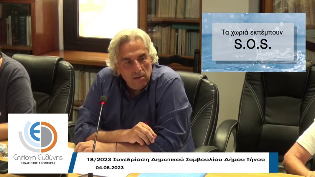 Για τα τραγικά προβλήματα που έχουν δημιουργηθεί στα χωριά του Δήμου μας σε σχέση με την ύδρευση τοποθετήθηκε πρόσφατα στο περιθώριο της συνεδρίασης του Δημοτικού Συμβουλίου ο επικεφαλής της αντιπολίτευσης Παναγιώτης Κροντηράς.