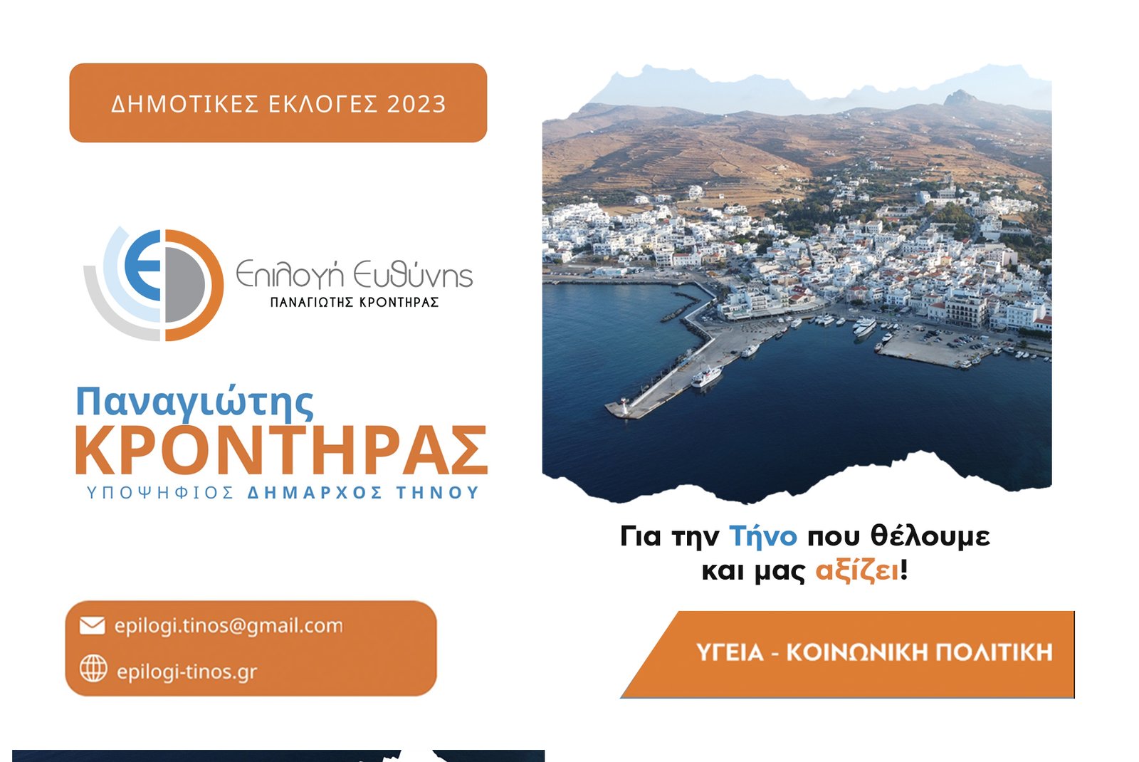 Θέλουμε να αναδείξουμε τα πλεονεκτήματα που έχει η Τήνος .Θέλουμε σε συνεργασία με εσάς, να αναπτύξουμε και αξιοποιήσουμε κάθε συγκριτικό μας πλεονέκτημα. Θέλουμε να δώσουμε στον πολίτη την αξία που του αξίζει, ίση αντιμετώπιση των δημοτών σε όλο τον δήμο. Αυτός είναι ο στόχος μας, δεν επιθυμούμε και δεν θα επιτρέψουμε περιοχές δυο ταχυτήτων, δεν θα επιτρέψουμε πολίτες δυο κατηγοριών.