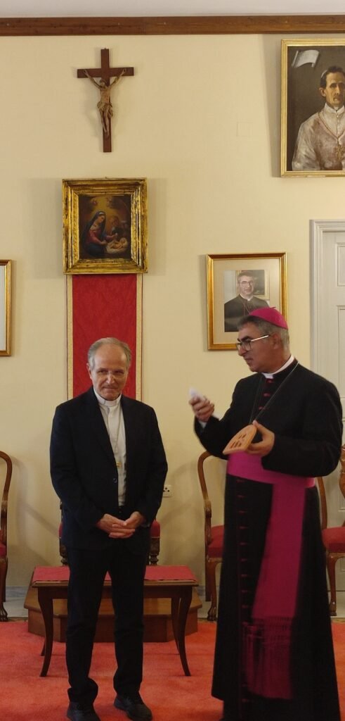 Εν συνεχεία, στην Αίθουσα Υποδοχής της Αρχιεπισκοπής, ο Σεβασμιότατος αντάλλαξε συμβολικά δώρα αδελφοσύνης και αγάπης με τον Ιταλό ομόλογό του και προσέφερε κέρασμα στους παρευρισκομένους.
