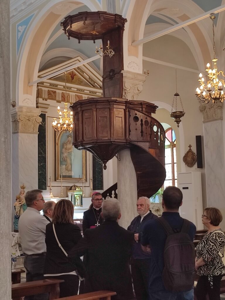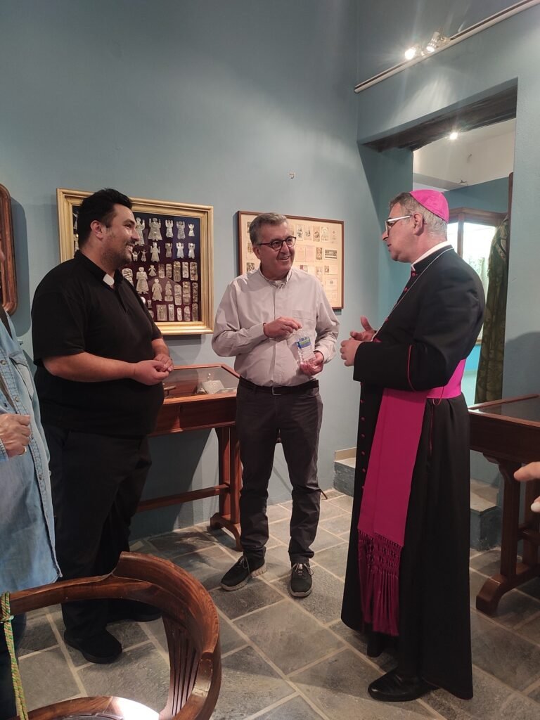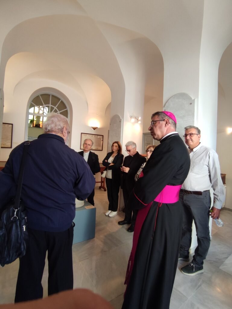 Ο σεβασμιότατος Morrone και η αντιπροσωπεία της Κάριτας ξεναγήθηκαν από τον πατέρα Μάρκο Φώσκολο, Αρχειοφύλακα της Αρχιεπισκοπής, στον Καθεδρικό ναό της Παναγίας του Ροδαρίου, καθώς και στο εσωτερικό του ιστορικού κτηρίου της Καθολικής Αρχιεπισκοπής :στη Βιβλιοθήκη, στο Αρχείο και στην προσφάτως ανακαινισμένη Έκθεση Εκκλησιαστικών και Πολιτιστικών Κειμηλίων.