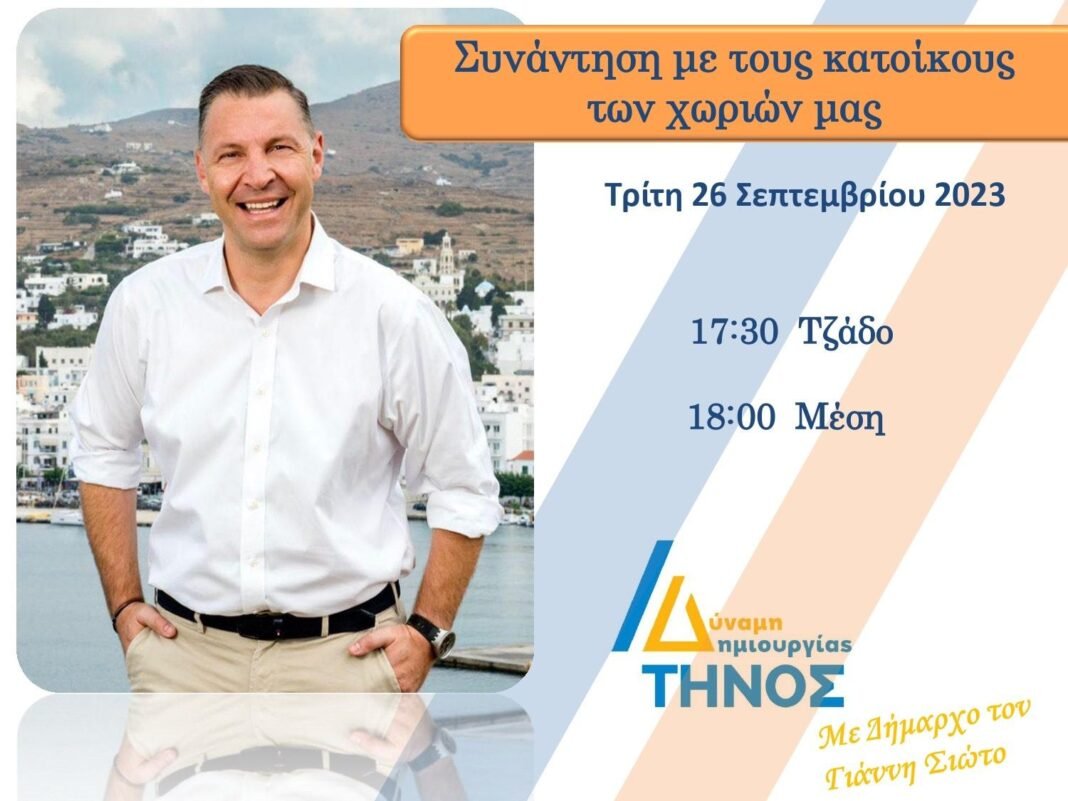 Επικαιρότητα Δύναμη ΔημιουργίαςΜέσηΤζάδος Επισκέψεις Συνδυασμού Δύναμη Δημιουργίας, Τρίτη 26 Σεπτεμβρίου 2023 Ακούστε αυτό το άρθρο Επισκέψεις Συνδυασμού Δύναμη Δημιουργίας 17:30 Τζάδος18:00 Μέση Κοινοποίηση FacebookWhatsAppViberΗΛΕΚΤΡΟΝΙΚΗ ΔΙΕΥΘΥΝΣΗCopy URL Πρόγραμμα Ιερών Ακολουθιών Αγίας Βαρβάρας Τζάδου Τήνου 02.12.2024 ΙΕΡΑ ΜΗΤΡΟΠΟΛΙΣ ΣΥΡΟΥ-ΤΗΝΟΥΕΝΟΡΙΑ ΑΓΙΟΥ ΙΩΑΝΝΟΥ ΜΟΥΝΤΑΔΟΥ ΤΗΝΟΥ ΠΡΟΓΡΑΜΜΑ ΕΟΡΤΗΣΙ.Ν. ΑΓΙΑΣ... Πρόγραμμα Ιερών Ακολουθιών Παμμεγίστων Ταξιαρχών Μέσης Τήνου 07.11.2024 ΙΕΡΑ ΜΗΤΡΟΠΟΛΙΣ ΣΥΡΟΥ-ΤΗΝΟΥΕΝΟΡΙΑΚΟΣ ΙΕΡΟΣ ΝΑΟΣΠΑΜΜΕΓΙΣΤΩΝ ΤΑΞΙΑΡΧΩΝ ΜΕΣΗΣ ΤΗΝΟΥ Φέρεται εις γνώσιν... Δύναμη Δημιουργίας – Η Δημοτική Αρχή Τήνου θάβει συστηματικά τα σκουπίδια στο Κοσσινι 26.08.2024 Κατόπιν αλλεπάλληλων αναφορών συμπολιτών μου οτι ο Δήμος Τήνου... Δύναμη Δημιουργίας – Εννιάμερα Παναγίας και αυτό το νερό τρέχει στις βρύσες της πόλης της Τήνου 23.08.2024 Εννιάμερα Παναγίας 2024 Αυτό το νερο τρέχει στις βρύσες της...