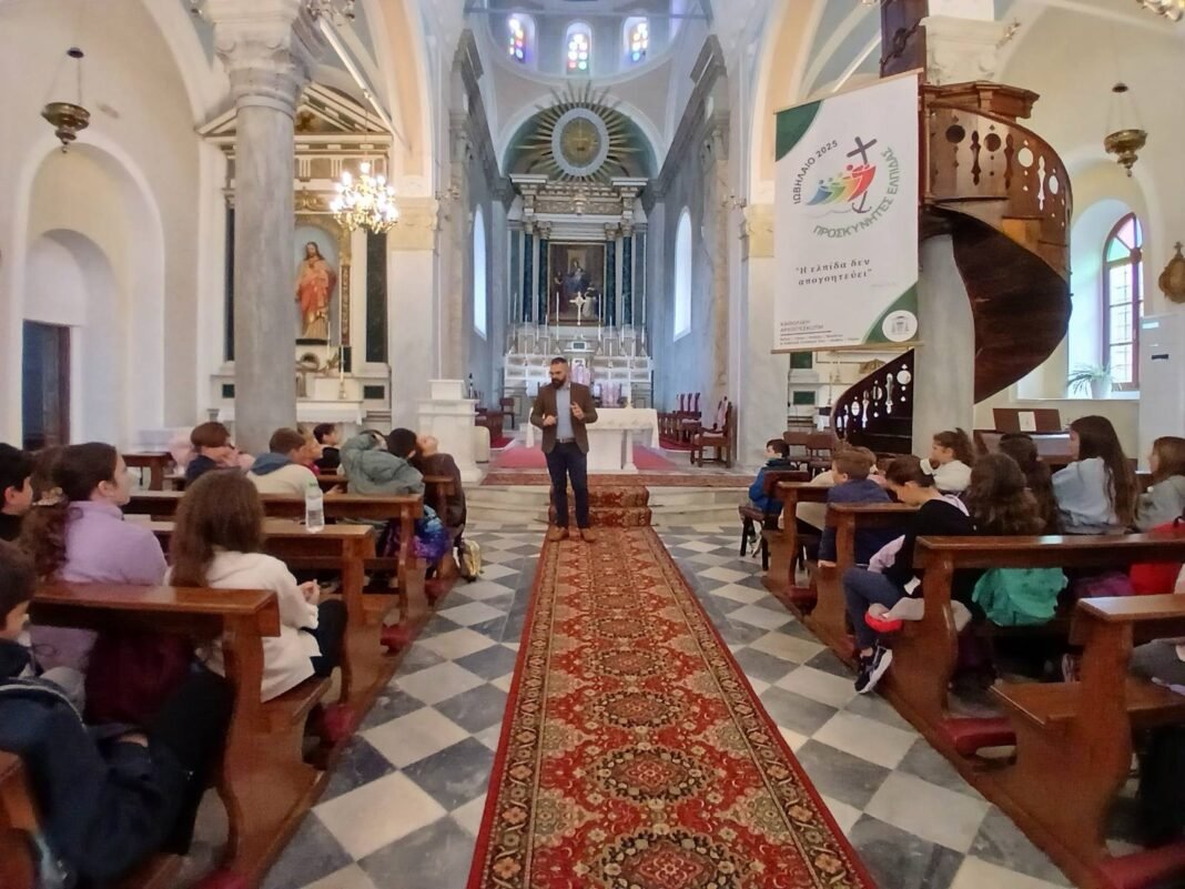 Την Τετάρτη 29-01-2025, πραγματοποιήθηκε η επίσκεψη των μαθητών των τάξεων Δ’, Ε’, και Στ’ του 1ου Δημοτικού Σχολείου Τήνου στο χωριό της Ξινάρας. Οι μαθητές ξεκίνησαν την περιήγησή τους από τον Καθεδρικό Ναό της Παναγίας του Ροδαρίου, ο οποίος αποτελεί ένα από τα παλαιότερα και σημαντικότερα θρησκευτικά και αρχιτεκτονικά μνημεία της Καθολικής παράδοσης του νησιού, καθώς και την φυσική και ιστορική έδρα της Καθολικής Αρχιεπισκοπής Νάξου – Τήνου – Άνδρου – Μυκόνου.