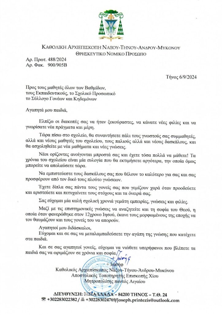 Σας εύχομαι μία καλή σχολική χρονιά γεμάτη εμπειρίες, γνώσεις και φιλίες.