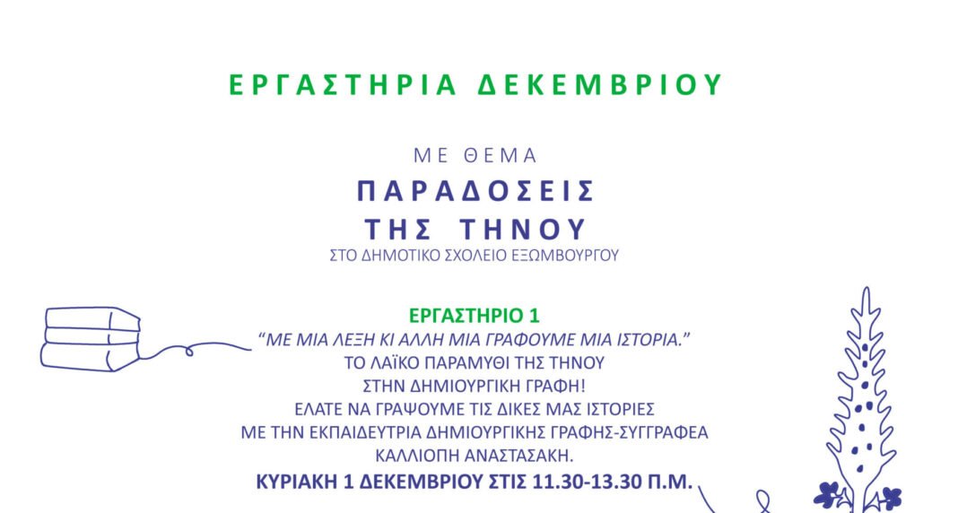 Σας περιμένουμε στα εργαστήρια του Δεκεμβρίου(είναι δωρεάν με απαραίτητη κράτηση συμμετοχής)!