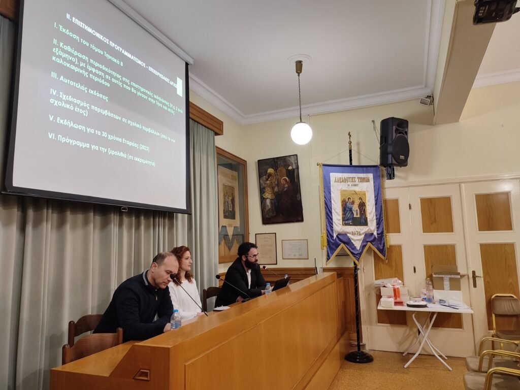 Ο κ. Θεόδωρος Χίου, Πρόεδρος της Ε.ΤΗ.ΜΕΛ. ανέπτυξε τον απολογισμό δράσεων έτους 2022 και παρουσίασε τις προγραμματισμένες και υπό σχεδιασμό δράσεις της Εταιρείας.