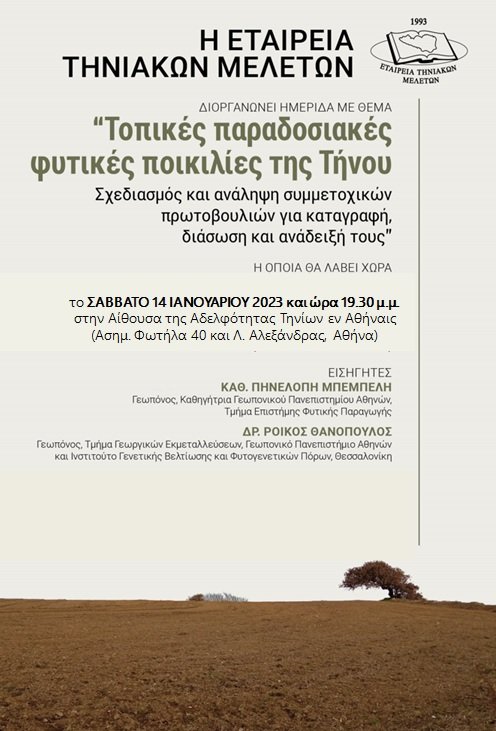 Η ως άνω εκδήλωση εντάσσεται στην ευρύτερη δράση που υλοποιεί η Εταιρεία Τηνιακών Μελετών για την καταγραφή, διατήρηση και διάσωση των τοπικών φυτικών ποικιλιών της Τήνου. Αποτελεί συνέχεια των ομότιτλων εκδηλώσεων που έλαβαν χώρα στην Τήνο τον Οκτώβριο 2022 και προπομπό των ερευνητικών αποστολών του ΓΠΑ στην Τήνο που θα λάβουν χώρα το προσεχές διάστημα.