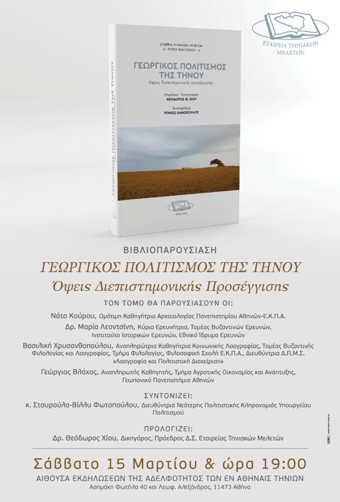 διεπιστημονικού τόμου «ΓΕΩΡΓΙΚΟΣ ΠΟΛΙΤΙΣΜΟΣ ΤΗΣ ΤΗΝΟΥ», η οποία θα λάβει