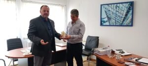 Στη συνέχεια τα μέλη του Συλλόγου επισκέφτηκαν το Επιμελητήριο Άρτας και συναντήθηκαν με τον πρόεδρο κ. Δημήτρη Χουλιάρα και τον Α’ αντιπρόεδρο κ. Φώτη Φώτη. Τον κ. Χουλιάρα τον συναντήσαμε με τη διπλή του ιδιότητα , καθώς είναι και πρόεδρος του Εμπορικού Συλλόγου Άρτας.