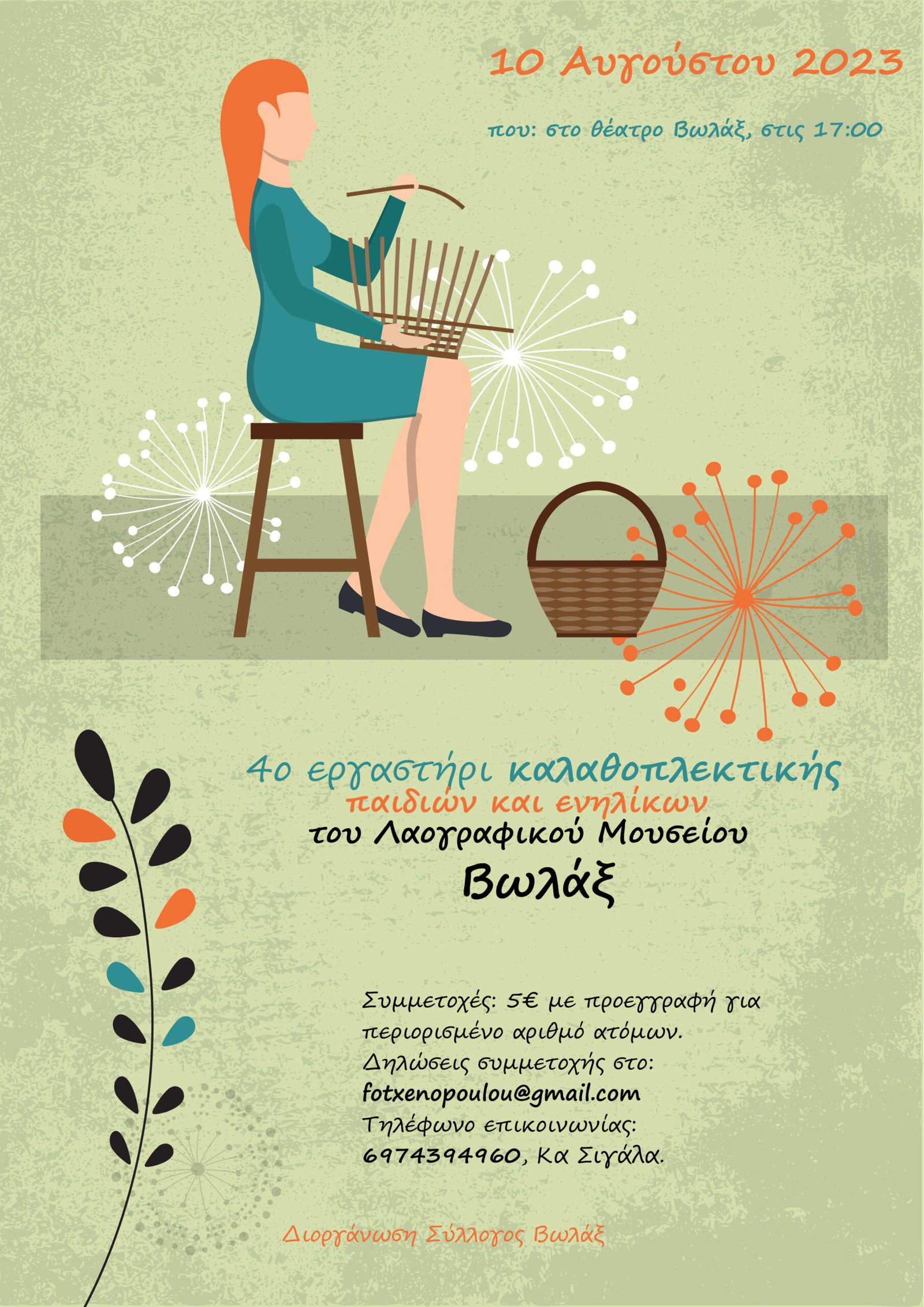 Σας προσκαλούμε να γνωρίσετε από κοντά την τέχνη της καλαθοπλεκτικής, να μάθετε την ιστορία της και να δημιουργήσετε τη δική σας χειροποίητη κατασκευή.