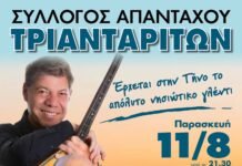 Έρχεται στην Τήνο το απόλυτο νησιώτικο γλέντι! Ο Βαγγέλης και ο Μιχάλης Κονιτόπουλος με την ορχήστρα τους και παρέα τους ο Γιάννης Μπαφαλούκος. Έναρξη: 21:30 Είσοδος: 10€ με ποτό και συμμετοχή σε κλήρωση δώρων