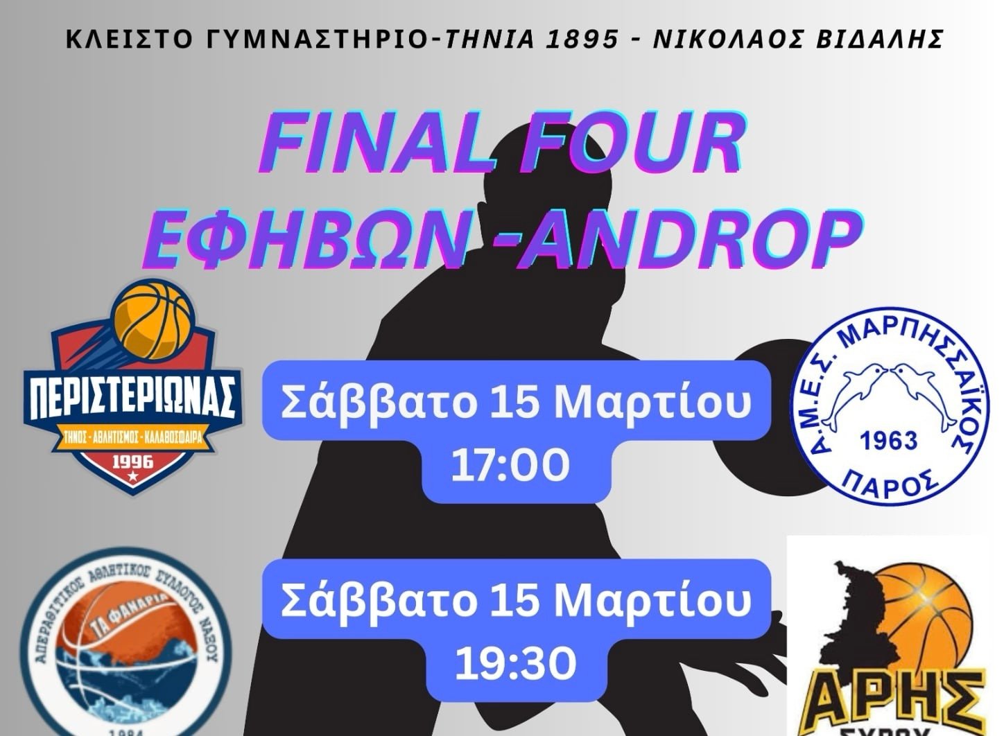 Το Κλειστό Γυμναστήριο «ΤΗΝΙΑ 1895 – Νικόλαος Βιδάλης» θα φιλοξενήσει το Final Four Εφήβων, ένα συναρπαστικό τουρνουά μπάσκετ με τις τέσσερις κορυφαίες ομάδες.