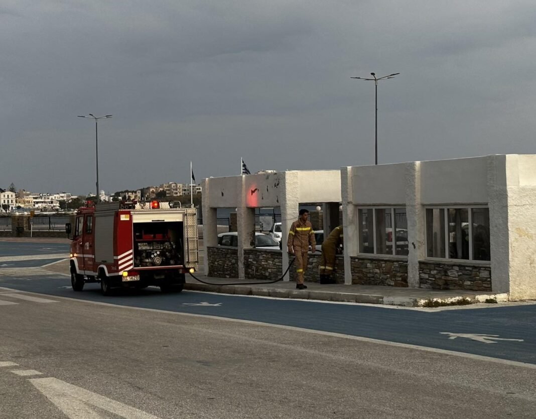 Φωτιά μικρής έκτασης κάτω από αδιευκρίνιστες συνθήκες ξέσπασε στις 8 μμ στο χώρο αναμονής ταξιδιωτών του νέου λιμένα Τήνου (έξω λιμάνι).