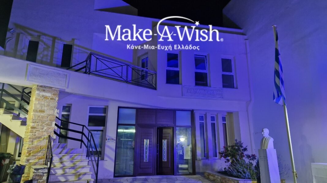 Ο Δήμου Τήνου φώτισε και φέτος το Δημαρχείο στα μπλε χρώματα του Make-A-Wish, τιμώντας όλα τα παιδιά που νοσούν ή έχουν νοσήσει με μία σοβαρή ασθένεια και διαδίδοντας έτσι το όραμα του οργανισμού.