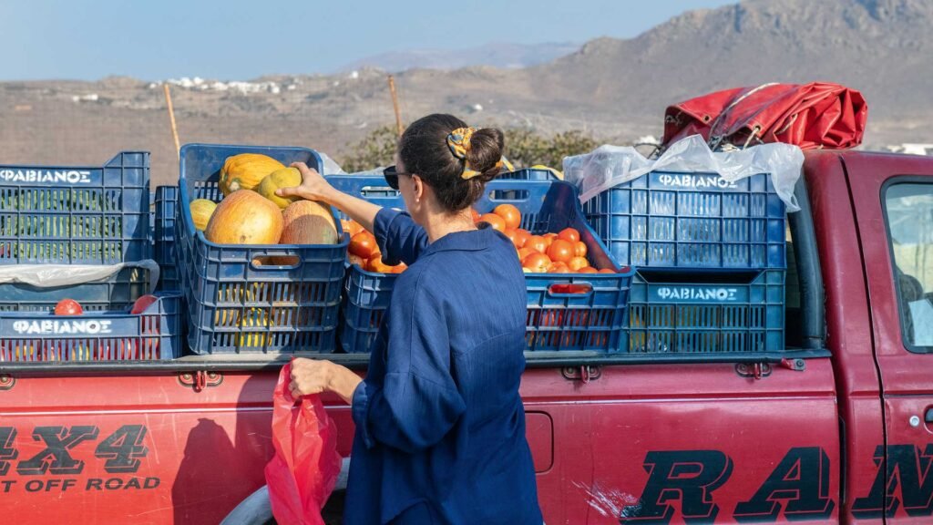 Οι μέρες του Φαβιανού είναι μεγάλες. Καθημερινά μετά το χωράφι, φορτώνει το αγροτικό και τραβάει για τα Έξω Μέρη, τα Υστέρνια, τον Πύργο, την Καρδιανή, τον Μαμάδο, και όπως έκαναν ο πατέρας κι ο παππούς του τότε με τα γαϊδούρια, πουλά την παραγωγή του στις πλατείες και στα στενά των χωριών. «Με περιμένουν για να αγοράσουν από μένα τη μαναβική τους. Με στηρίζουν κι αυτό είναι πολύ σημαντικό». Ταγμένος στη γη, ασχολείται με τις καλλιέργειές του ολημερίς, πίνει μέχρι και τον καφέ του στο χωράφι, παιδεύεται να προσπεράσει στην πράξη τα εμπόδια που βάζει η κλιματική αλλαγή και ευελπιστεί συν τω χρόνω να ενσταλάξει την αγάπη για τη γη και στον γιο του.