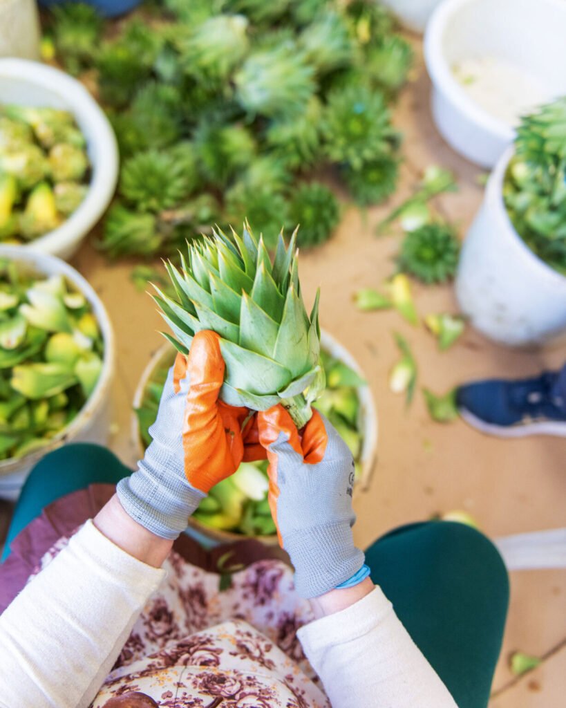 Πόση τρέλα χρειάζεται για να καλλιεργείς με πάθος και αφοσίωση ένα φυτό όλο αγκάθια; Η αγριαγκινάρα, που καρποφορεί μόνο για λίγες μέρες στα τέλη της άνοιξης, στο ιδιαίτερο τερουάρ της Τήνου, είναι το φόρτε του Τηνιακού αγρότη Φαβιανού Ρουγγέρη. Ο ίδιος εξηγεί ότι η ραγδαία κλιματική αλλαγή και οι ανομβρίες έχουν αποσταθεροποιήσει τις αποδόσεις της ήμερης αγκινάρας, αλλά όχι της άγριας, η οποία, παρότι ζόρικη στην καλλιέργεια, είναι πιο πεισματάρα, ανθεκτική στη λειψυδρία και σταθερά καρπερή, αν και με μικρή απόδοση.