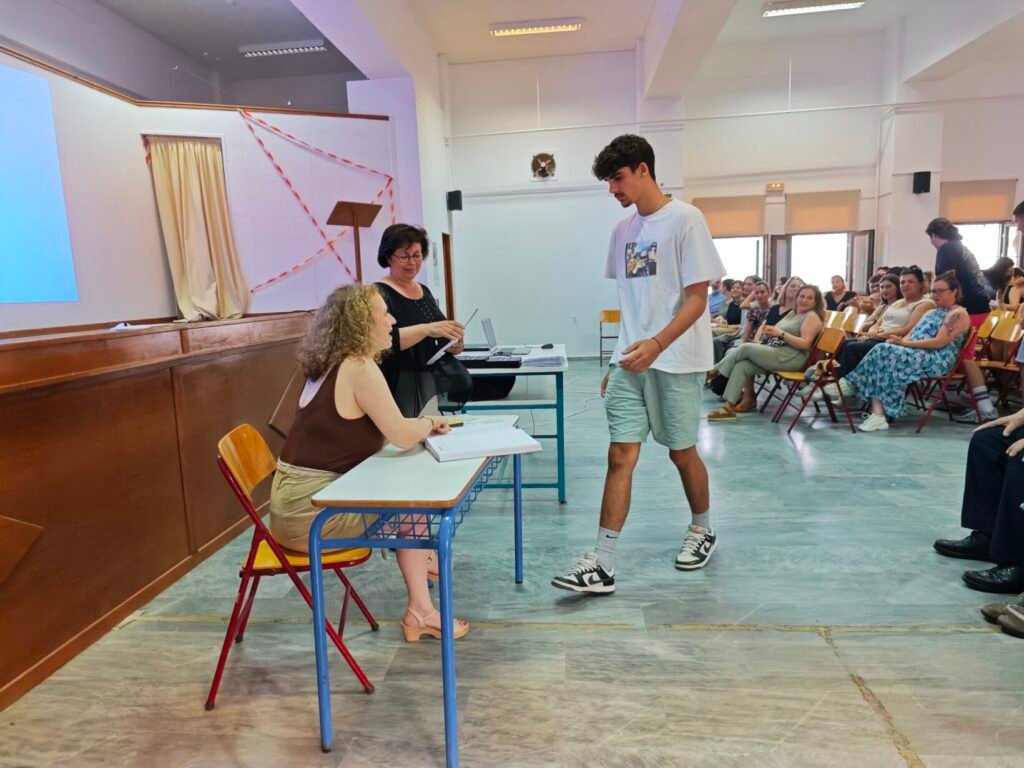 Mε μία λιτή εκδήλωση αποχαιρετήσαμε την Παρασκευή 14 Ιουνίου στην Αίθουσα Πολλαπλών Χρήσεων τους μαθητές και μαθήτριες της Γ΄ τάξης του Σχολείου μας. Οι τελειόφοιτοι, όχι πια μαθήτριες και μαθητές, αλλά κυρίες και κύριοι με τη φρεσκάδα της ηλικίας τους, τη χαρά στα μάτια τους, την ανακούφιση για το τέλος των εξετάσεων ήρθαν για να παραλάβουν τον απολυτήριο τίτλο που αποδεικνύει την ολοκλήρωση της φοίτησής τους στο Λύκειο.