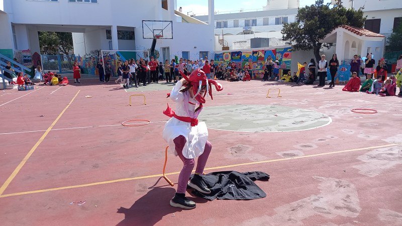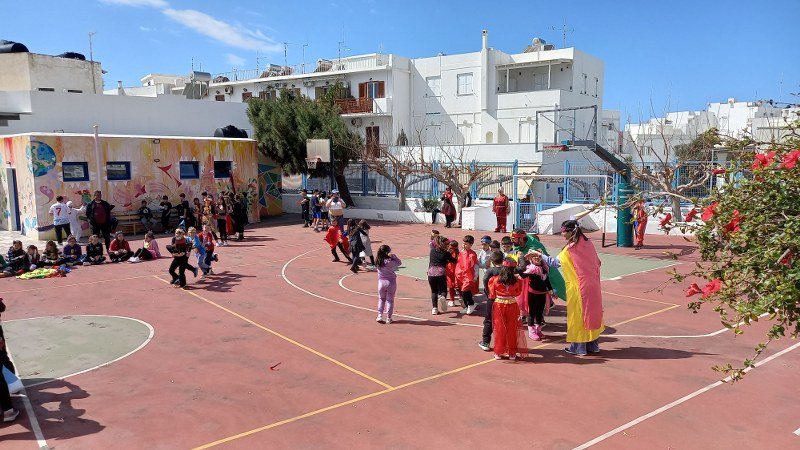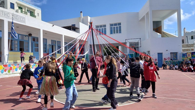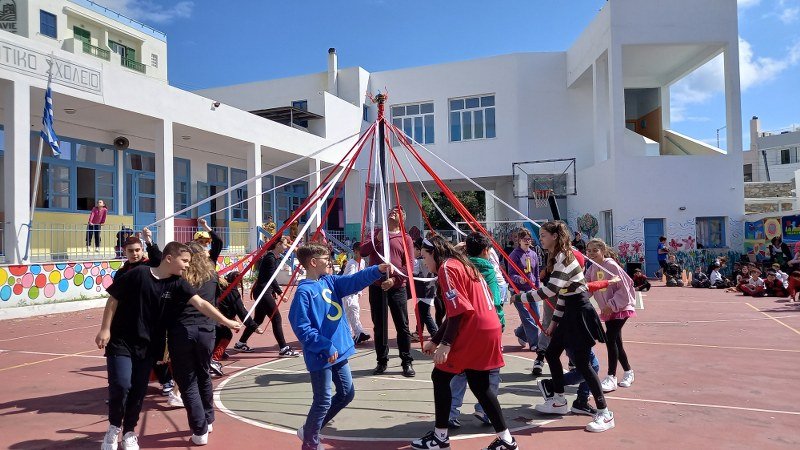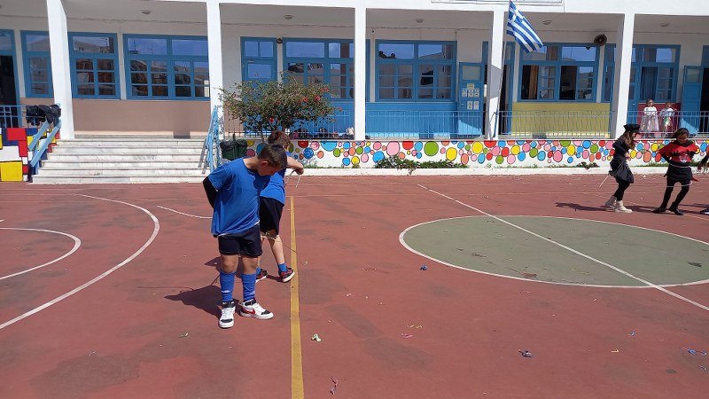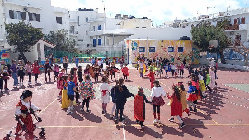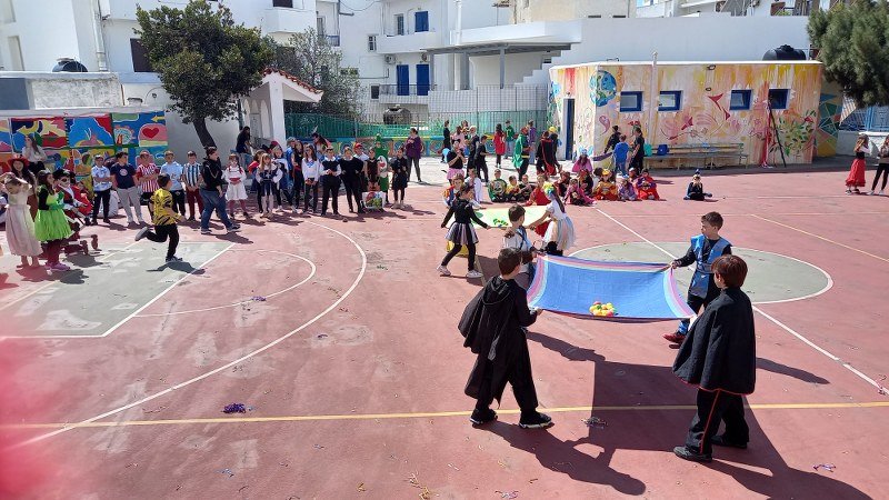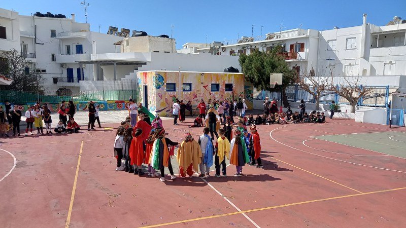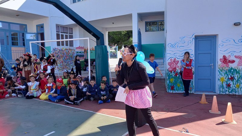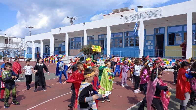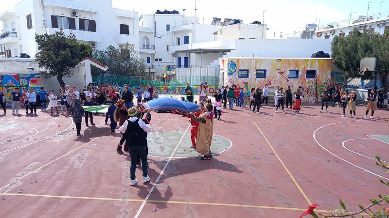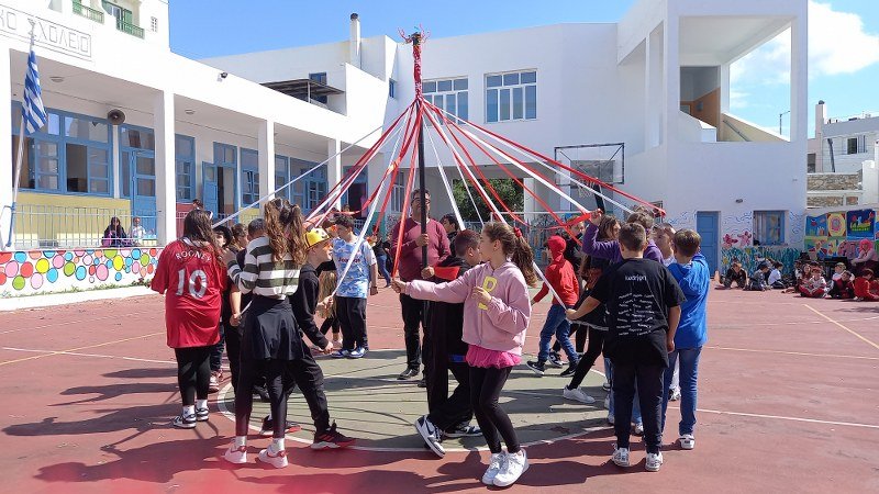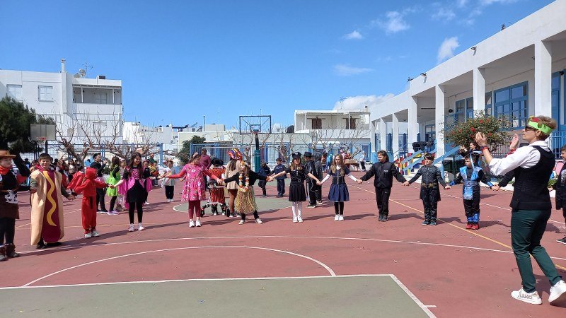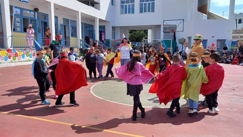 Την τελευταία Παρασκευή της Αποκριάς, 15 Μαρτίου 2024 γιορτάσαμε τη λήξη του Τριωδίου. Παραδοσιακά ένα μικρό γλέντι στήνεται στο προαύλιο του σχολείου μας. Ήταν μια μέρα που περίμεναν με ανυπομονησία όλοι οι μαθητές: μεταμφιεστήκαμε, χορέψαμε παραδοσιακά τραγούδια, τραγουδήσαμε και παίξαμε ανά τάξη, πλέξαμε το γαϊτανάκι και διασκεδάσαμε στο προαύλιο τις τελευταίες δύο ώρες.